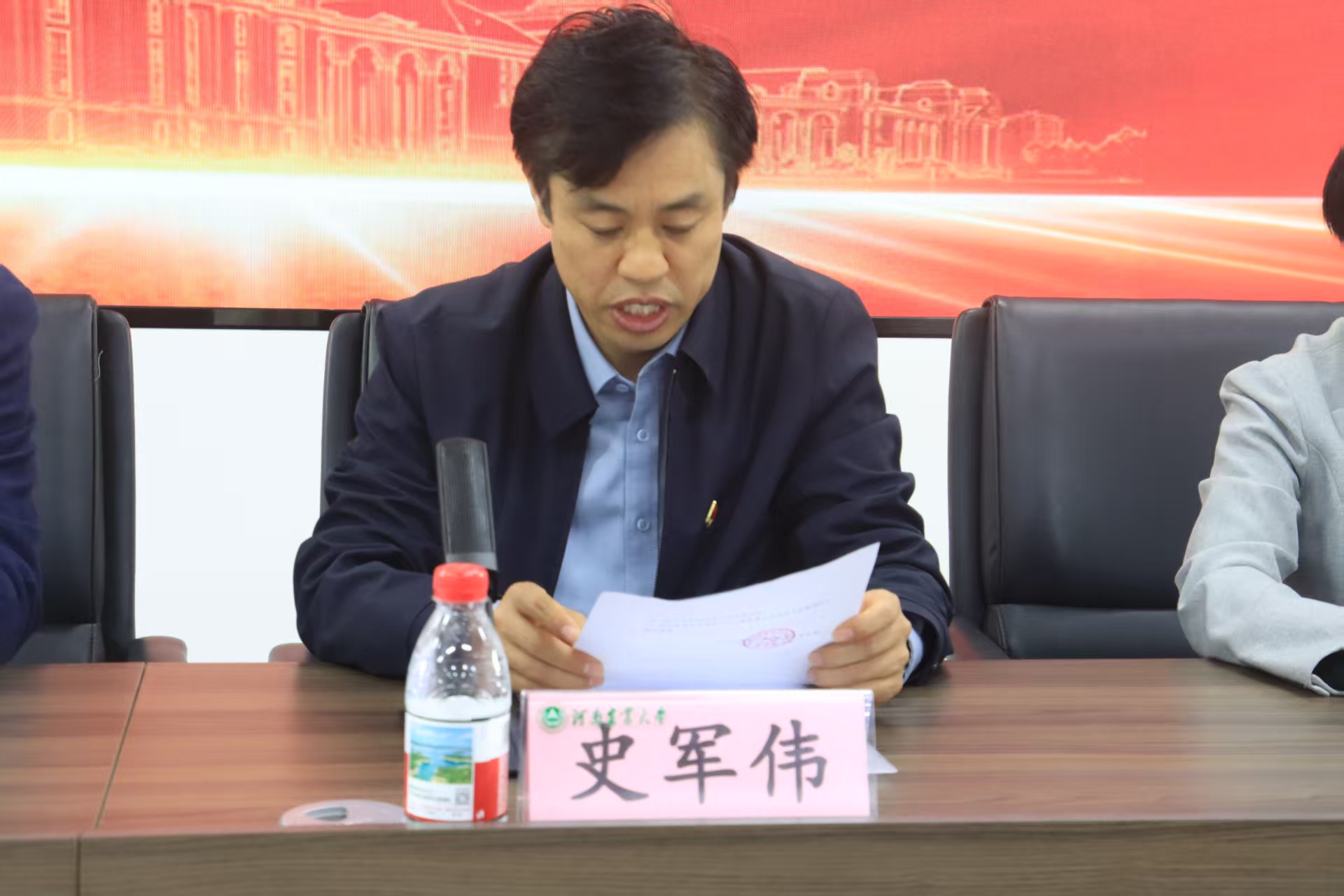 大会在庄严的国歌声中拉开帷幕。史军伟宣读校党委关于召开本次党员大会的批复。