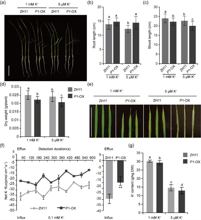 图1RGSV P1转基因过表达水稻对缺钾敏感且根部钾吸收能力降低