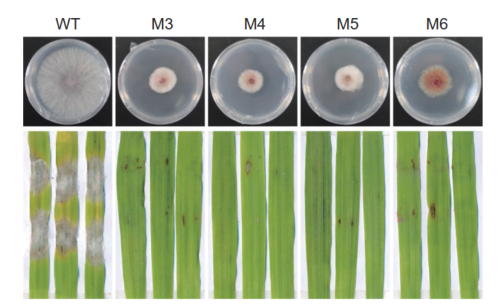 为了探索假禾谷镰孢致病的分子机制,研究团队通过正向遗传学的方法,以假禾谷镰孢强致病力菌株WZ-8A为背景,构建了T-DNA插入突变体文库,获得了的突变体约500个。利用该方法快速鉴定到了在假禾谷镰孢侵染过程中发挥关键作用的基因,先前该团队已经报道的在假禾谷镰孢菌丝融合中发挥关键作用的基因FpHam也是通过该方法鉴定的(Chen et al., 2023)。本研究进一步通过验证T-DNA插入突变体在大麦上的致病力,筛选到了9个致病力显著降低的突变体。经鉴定,其中一个突变体的FpRCO1基因被破坏,该基因是酿酒酵母RCO1的同源基因,编码的产物是Rpd3S组蛋白去乙酰化酶复合物的重要组成部分。为了进一步验证插入突变体表型的变化是由FpRCO1基因的被破坏导致的,该团队通过split-marker的方法敲除了该基因进一步分析其表型。