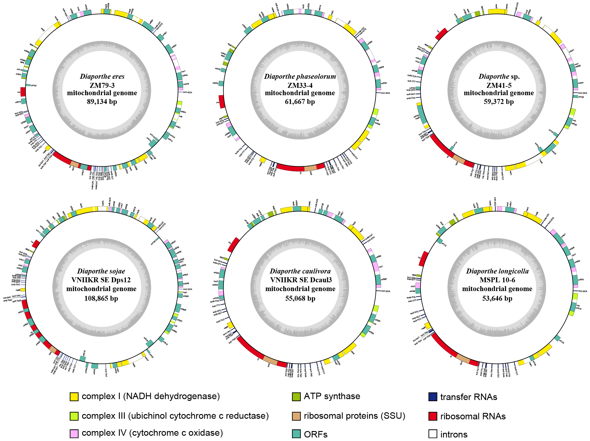 图1 六个Diaporthe属物种的线粒体基因组图谱