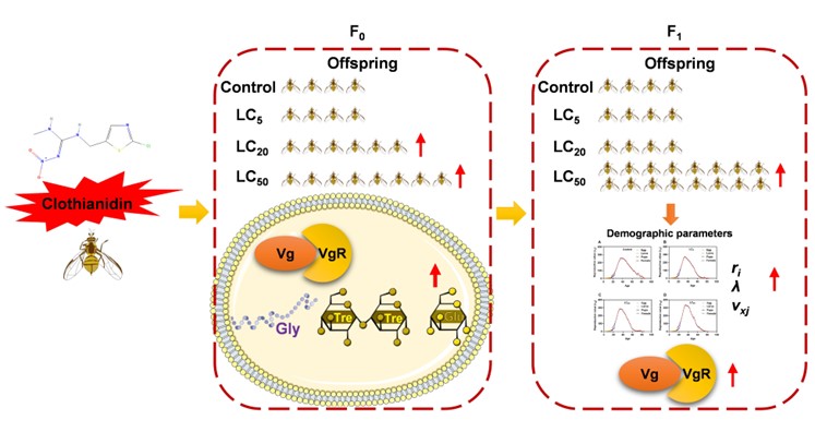 尹新明教授团队/安世恒教授课题组在昆虫学TOP期刊中科院一区《Pesticide Biochemistry and Physiology》杂志在线发表了题为“Clothianidin exposure enhances fecundity in Bactrocera dorsalis via metabolic activation and endocrine modulation: implications for pest resurgence”的研究论文。化学杀虫剂长期以来一直是农业害虫治理的重要手段。然而,本研究发现使用杀虫剂引起的“亚致死效应”,反而促进害虫种群的恢复与扩张。