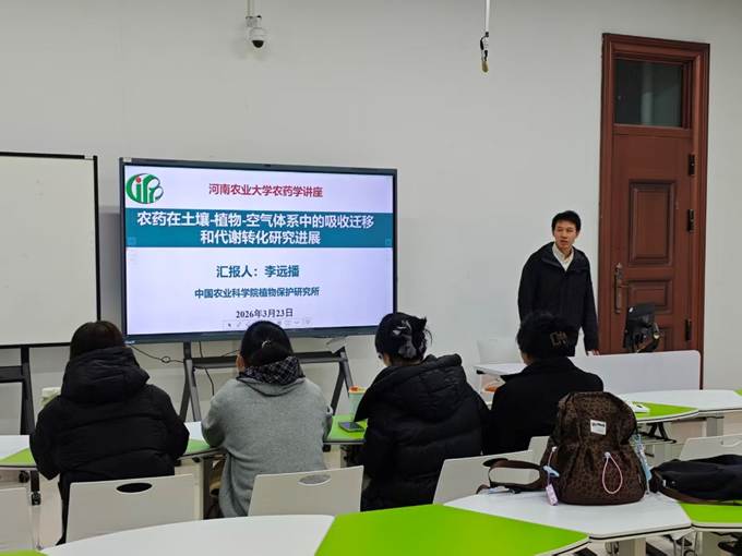 特邀中国农业科学院植物保护研究所李远播研究员作题为《农药在土壤-植物-空气体系中的吸收迁移》的专题学术报告,为植保学院师生和联合研究生院研究生带来了一场聚焦农药环境行为领域的专业学术分享。