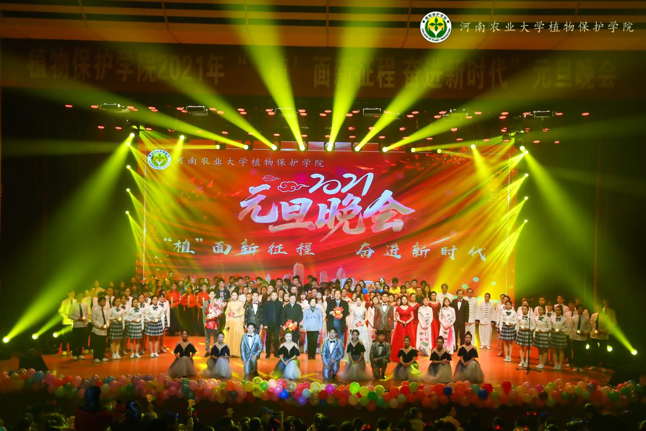 此次元旦晚会共有十四个节目,深情的演唱、火辣的舞蹈、幽默的小品、精彩的武术表演等各类节目轮番上映。晚会现场,节目精彩纷呈,气氛热烈,处处洋溢着青春活力。晚会一开始,充满活力、激情四射的开场舞瞬间点燃了现场的气氛。由高梦倩、王亚欣等带来的朗诵《疫情温情》让大家回想起那段病毒肆虐的日子,逆行者们逆向而行,履职尽责,病毒带来了城市的荒凉,却阻挡不了人心温暖的传递;由胡荣清、王宏玉等带来的的歌舞《天下》,由艾妞、莫燃等带来的小品《一代宗师》相继登场。由张留占、白润蛾、郑晓军等老师们表演的《太极》让同学们大开眼界,尽展植保老师的活力,更让大家近距离感受到了中国武术的魅力;由刘凯、马一鸣演唱的歌曲《无名之辈》,由许晓娜、乔壮壮等带来的T台秀《青春·虫趣》,也从不同方面展示了植保学子的青春魅力。由黄容、杨悦等青马人带来的情景剧《点灯》讲述了脱贫攻坚战中的感人故事。下半场中由北极星乐队演奏的《愿望交换商店》、由郭雅欣等带来舞蹈《归去来兮》、由李冠儒等带来的朗诵《何以青春 何以中国》上场表演,现场气氛浓烈,节目别具匠心。由王郑军带来的两首歌曲《不忘初心》、《父亲对我说》,歌声悠扬,感情充沛。节目扣人心弦,尖叫声此起彼伏。历时一个半小时的晚会在合唱《山河无恙在我胸》中圆满落下帷幕。