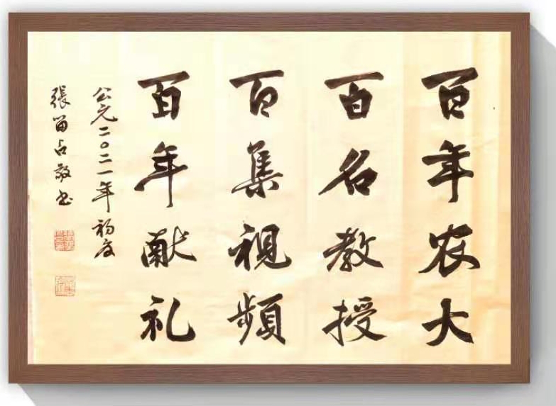 图1.植保学院党委书记张留湛专题为百年农大、百名教授、百集视频、百年献礼活动题词