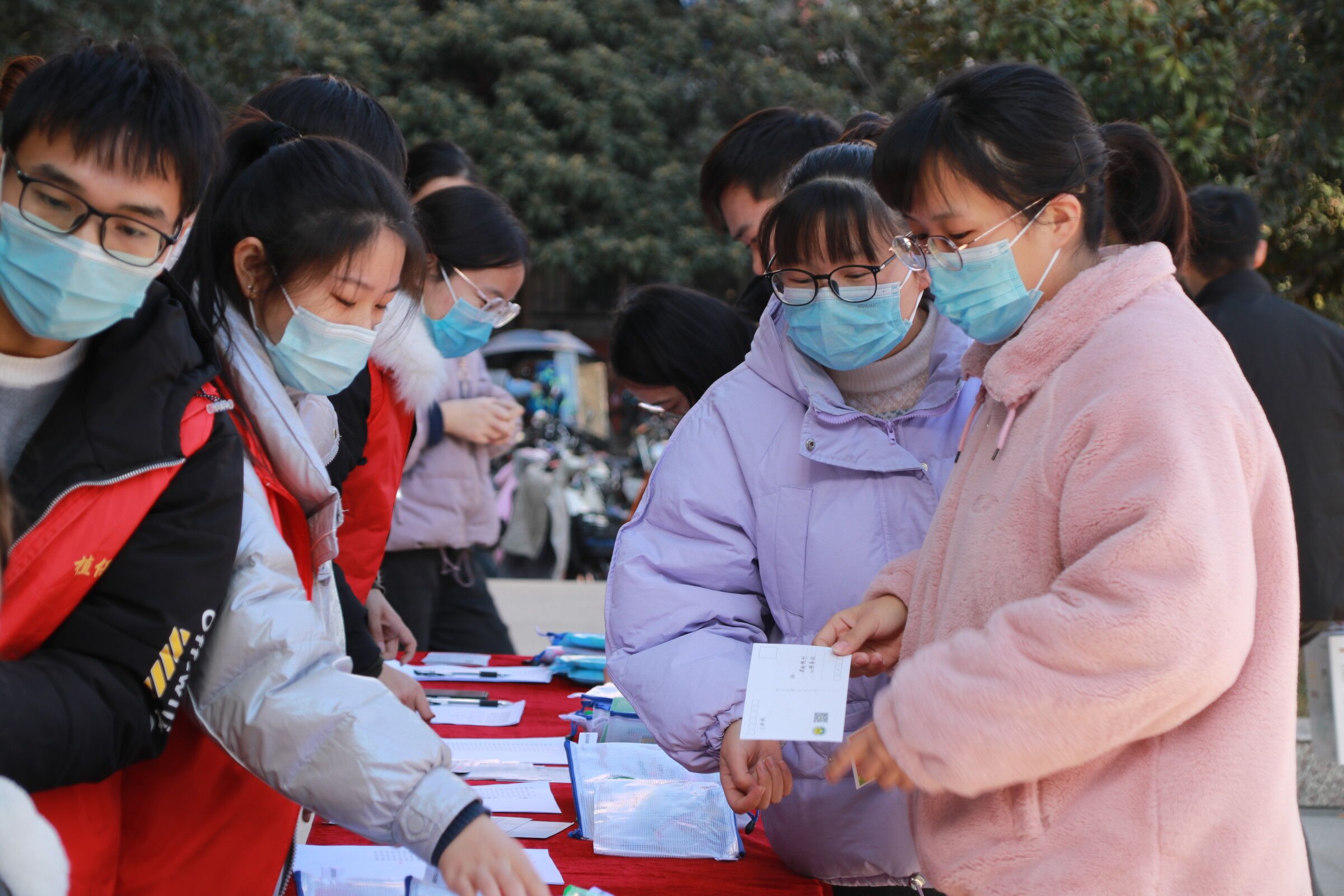 志愿者分发祝福卡片