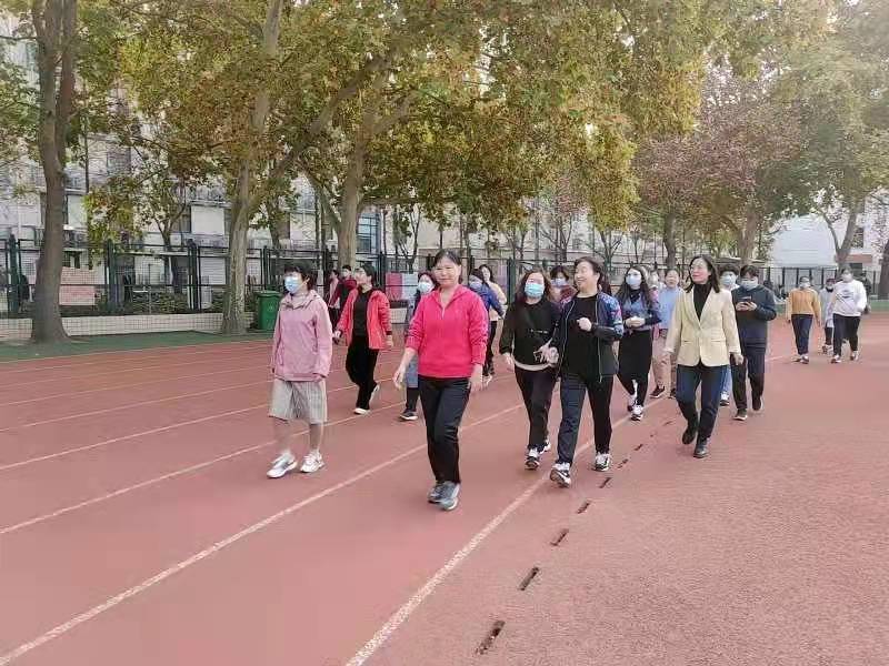 女职工们早早集合在了老校区操场,热身完毕后,由操场主席台出发,开始绕操场两圈的健步走活动。参加本次活动的约40名教职工兴致高昂,一边阔步向前,一边交流工作、生活方面的体验,并时不时开怀大笑。大家平日科研任务较重,久坐使用电脑造成各种伤病困扰,正好趁此机会舒展筋骨,感受运动带来的身心愉悦。
