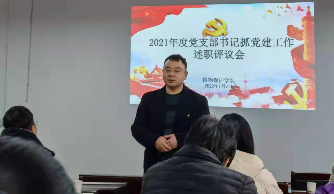 张留占对各党支部书记的述职情况进行点评并作总结讲话。他结合各支部特色亮点工作等方面充分肯定了各支部取得的成绩,针对存在的不足提出相关建设性意见,并根据学院工作安排对本学年支部工作提出四点要求:一是要做好“课堂思政”,鼓励全体教师将专业课知识与时政热点充分结合,充分调动学生的积极性;二是要重视支部建设,明确支部的引领推动监督作用;三是要具有社会服务意识,倡导学院老师“走出去”,积极投身社会服务,讲好植保故事;四是要推进科研协同攻关,做好青年教师的培养工作,切实提升学院办学水平,助推学院各项工作高质量发展。