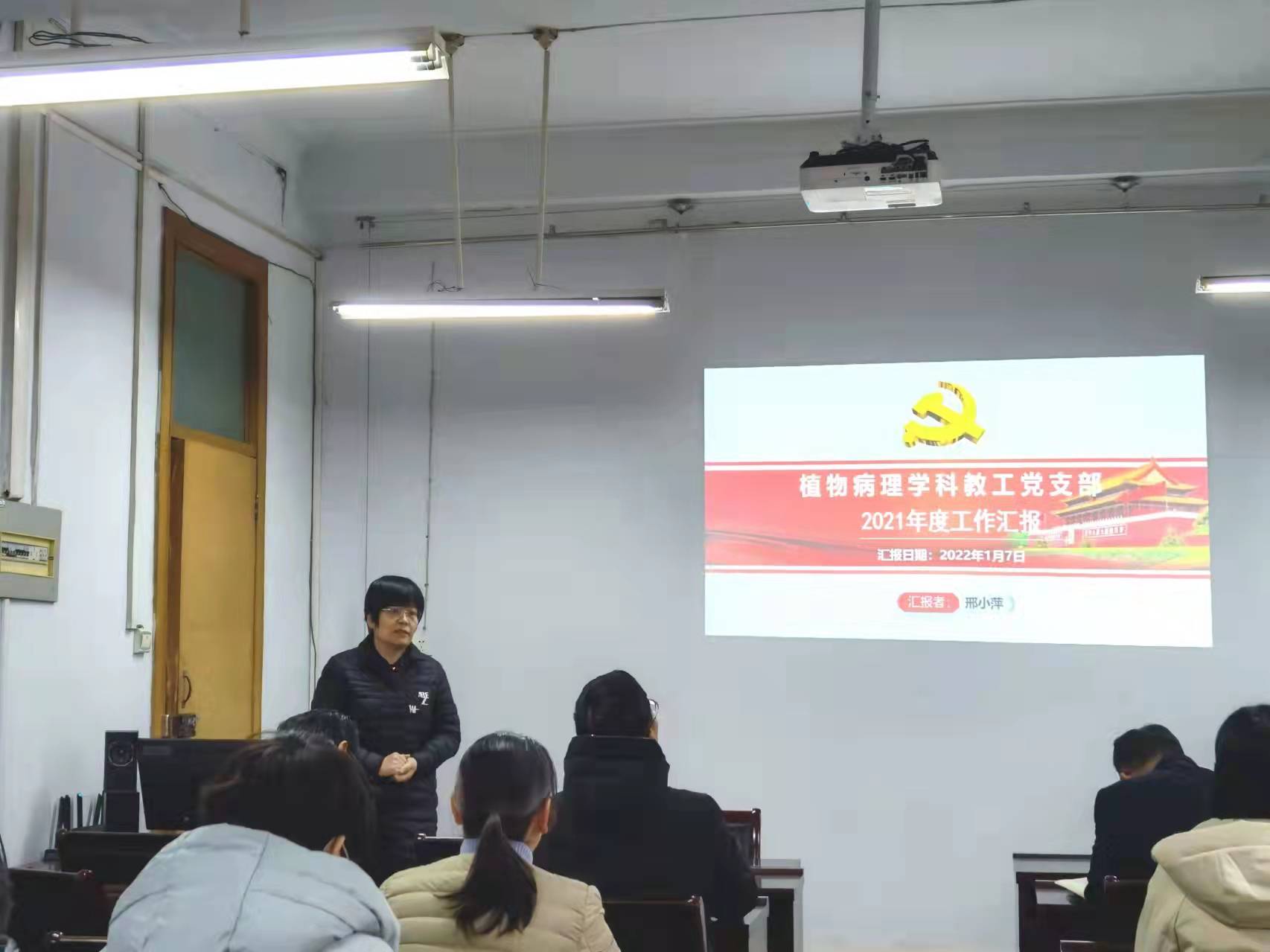 植物病理系教工党支部书记邢小萍进行述职