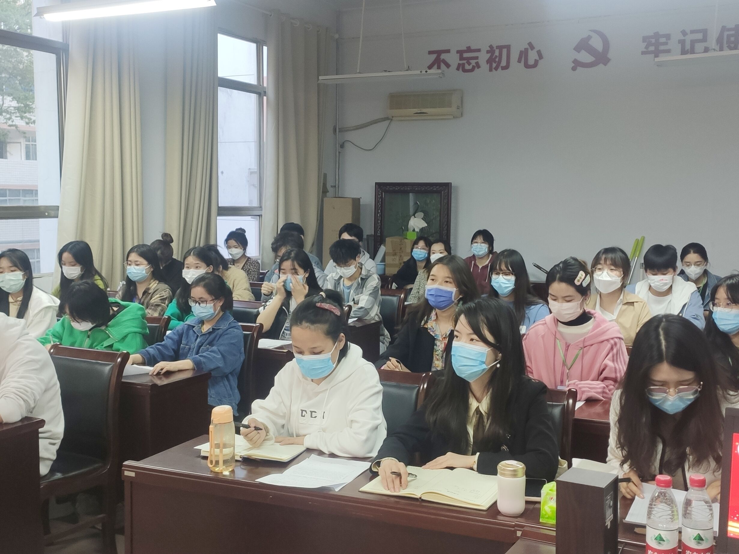 于文化路校区1号楼219会议室召开2021-2022学年学生干部先进个人评选大会。院团委副书记甄珍、黄姗姗,院党委组织员白瑜瑾参加此次会议。