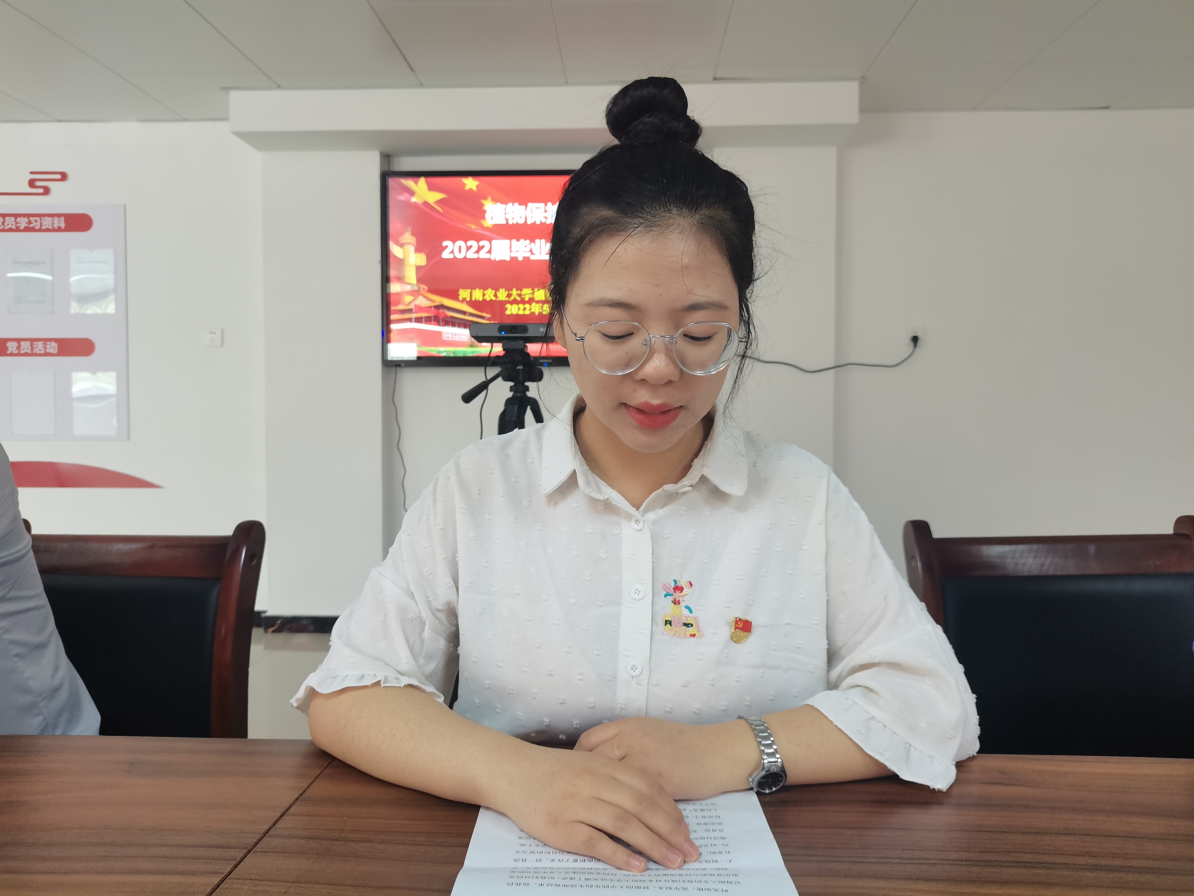 2022届优秀毕业生党员代表万笑迎和刘佳莉做典型发言并表态:会时刻牢记党员身份,永远保持共产党员的精神底色,铭记不忘初心,牢记使命,运用自己所学奉献社会。同时多名先进党员也进行了交流。