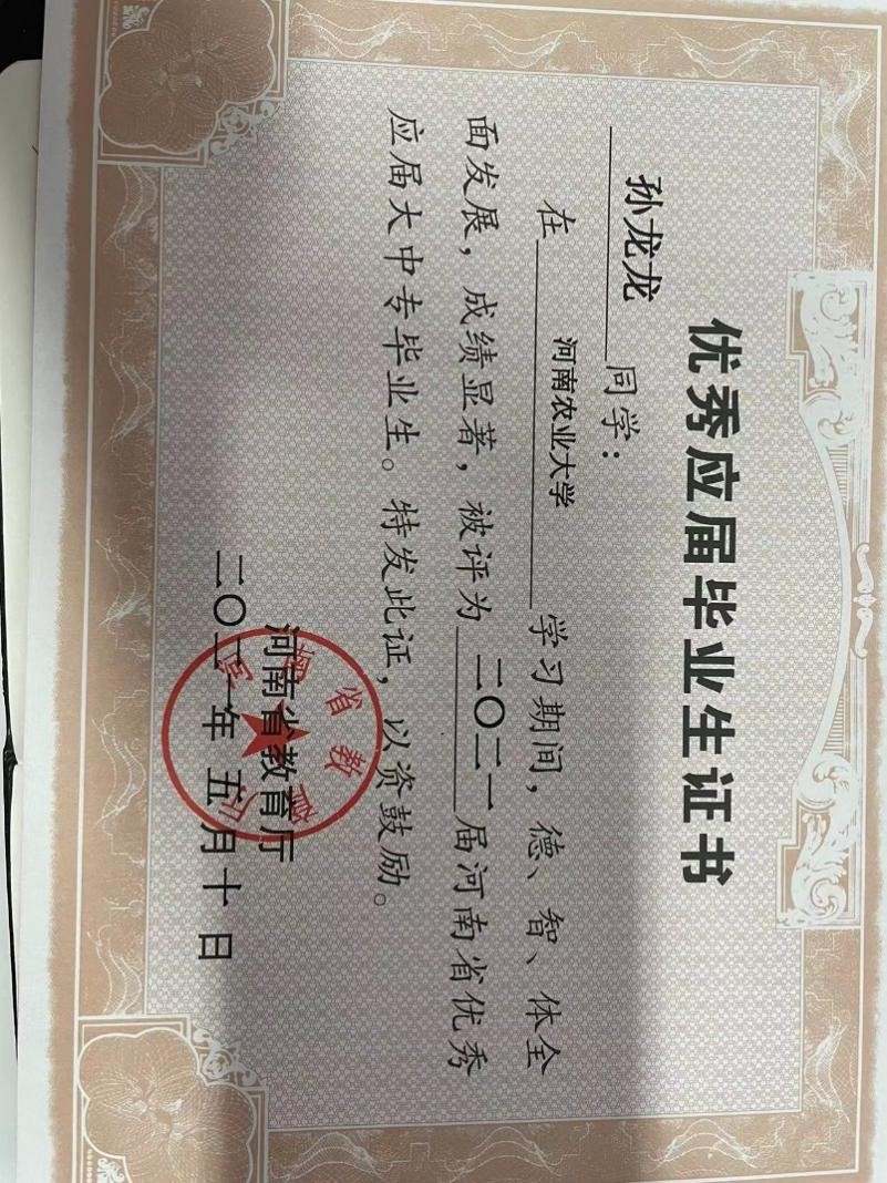 优秀党员孙龙龙获评优秀应届毕业生