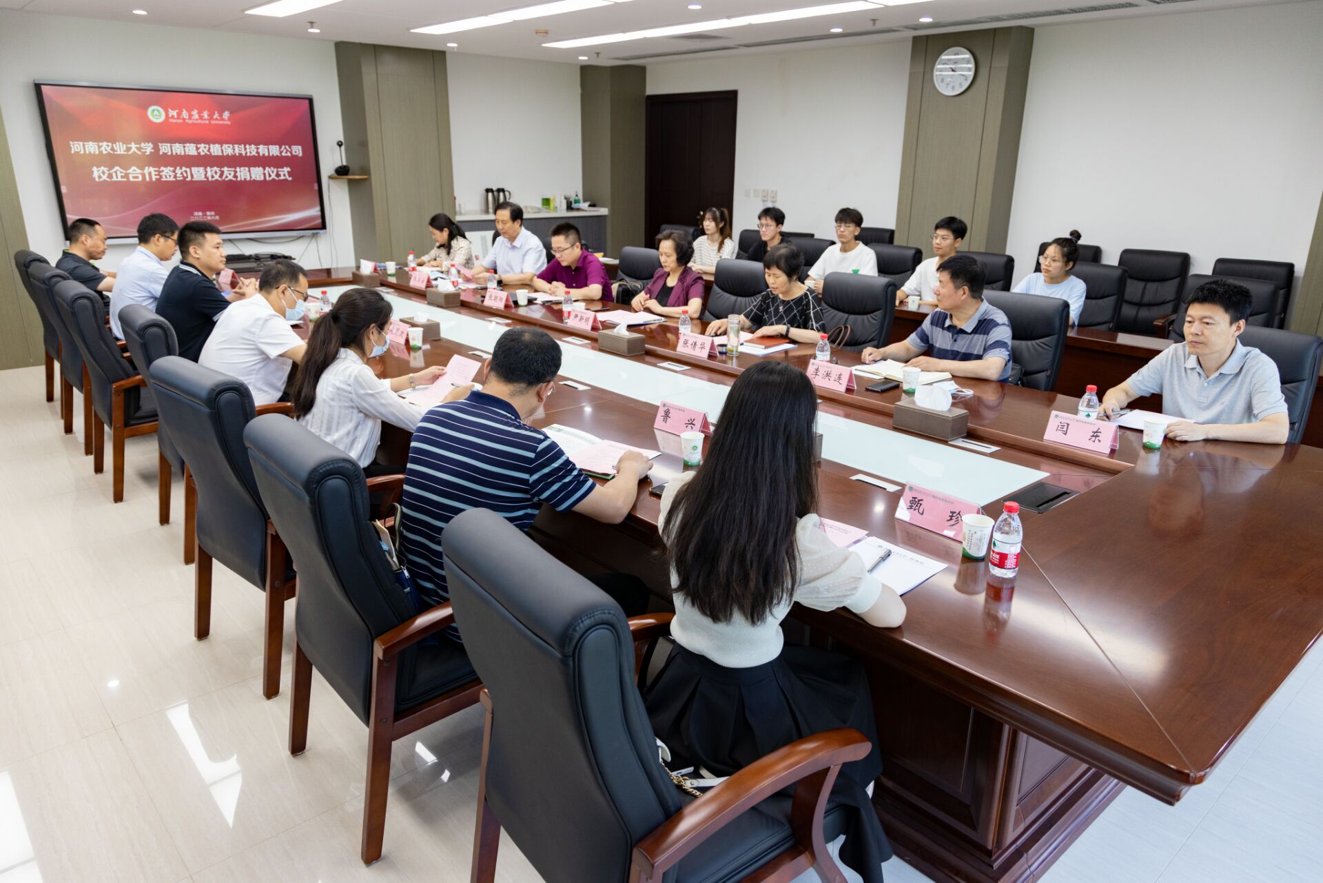 施国政介绍了河南省内农药行业发展现状,指出河南蕴农植保有限公司作为河南省行业翘楚,应以本次校企合作为契机,加大产学研合作力度、推出更多高效、绿色产品,为推动全省农业绿色高质量发展作出更大贡献。