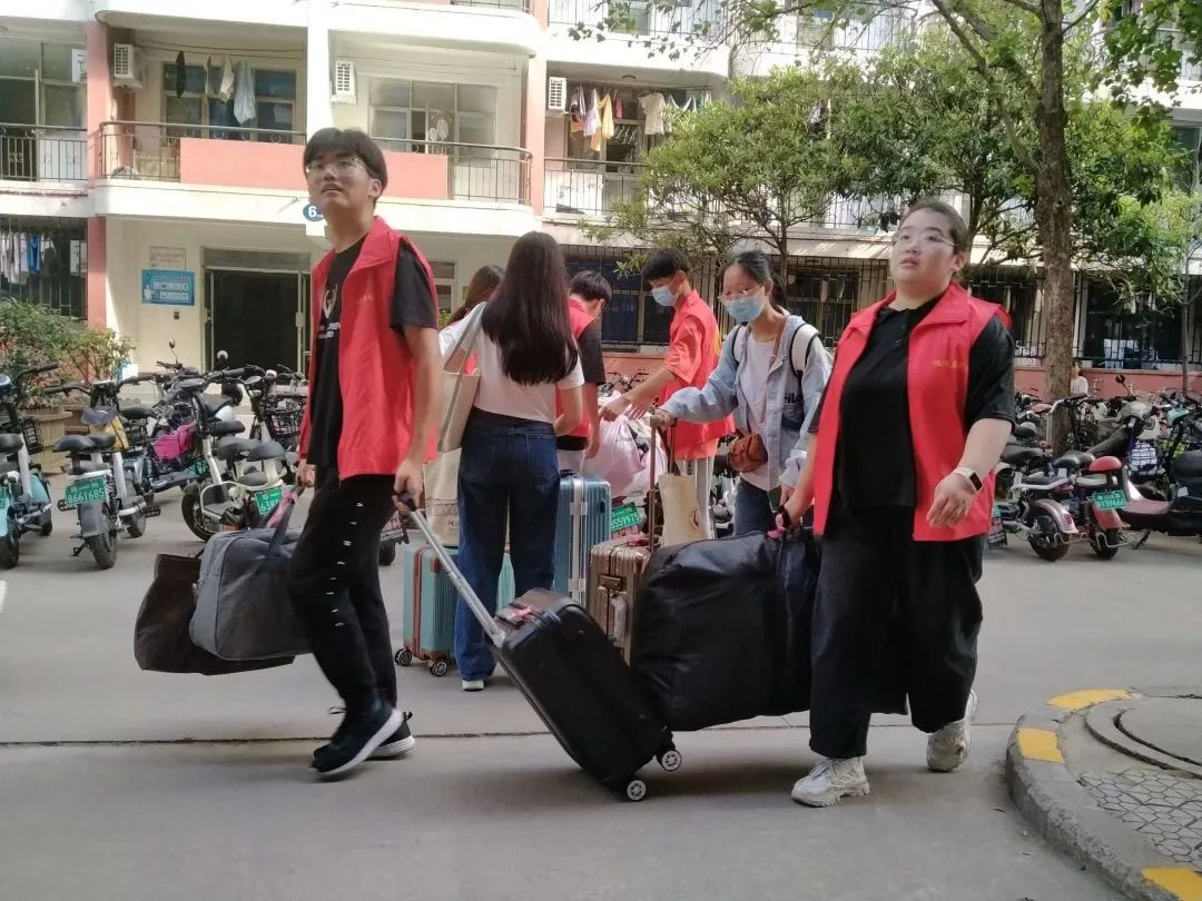 志愿者们为新生搬运行李
