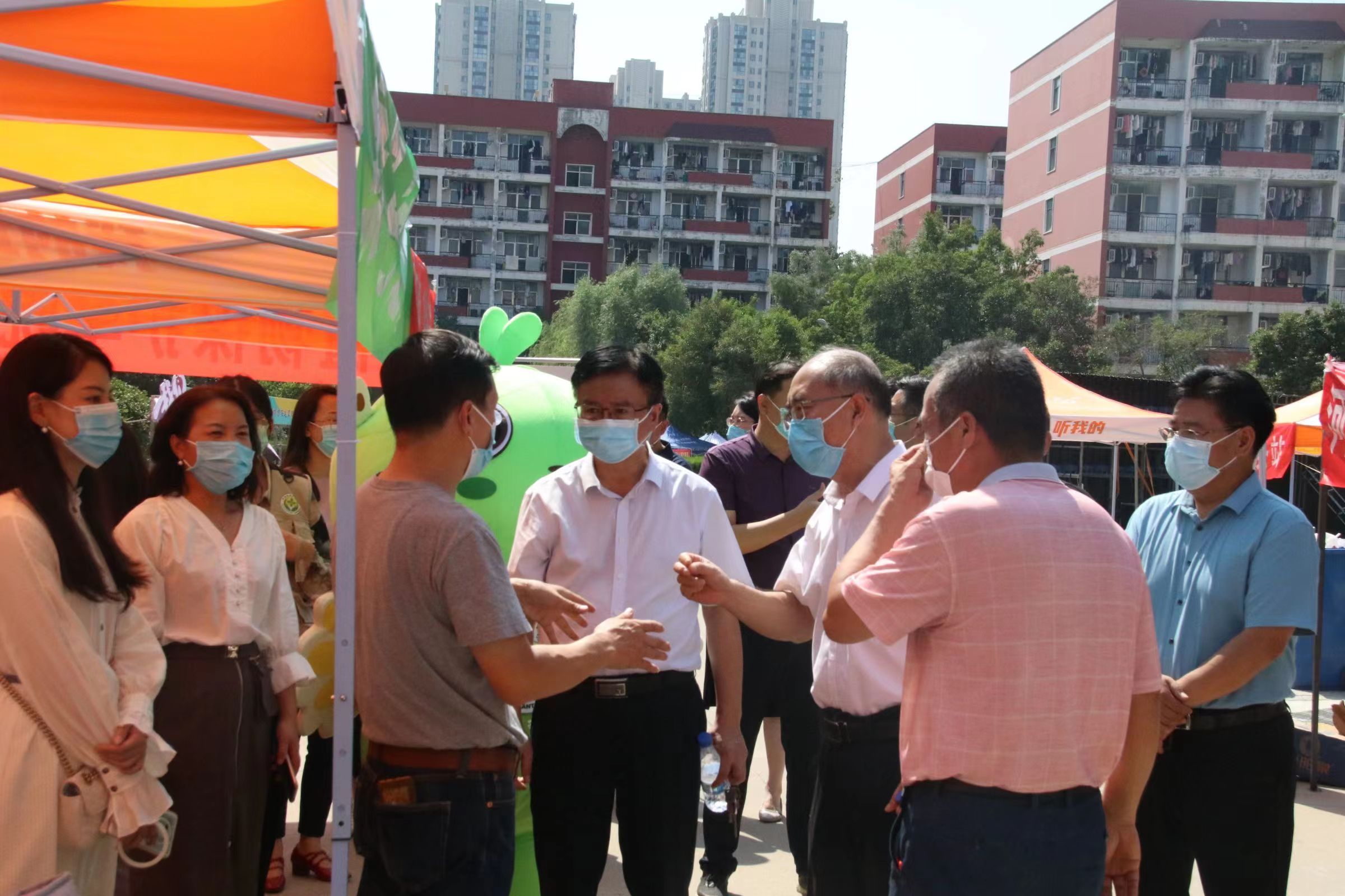 院党委副书记鲁兴向林同保副校长一行介绍研究生报到现场情况
