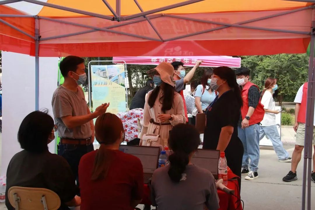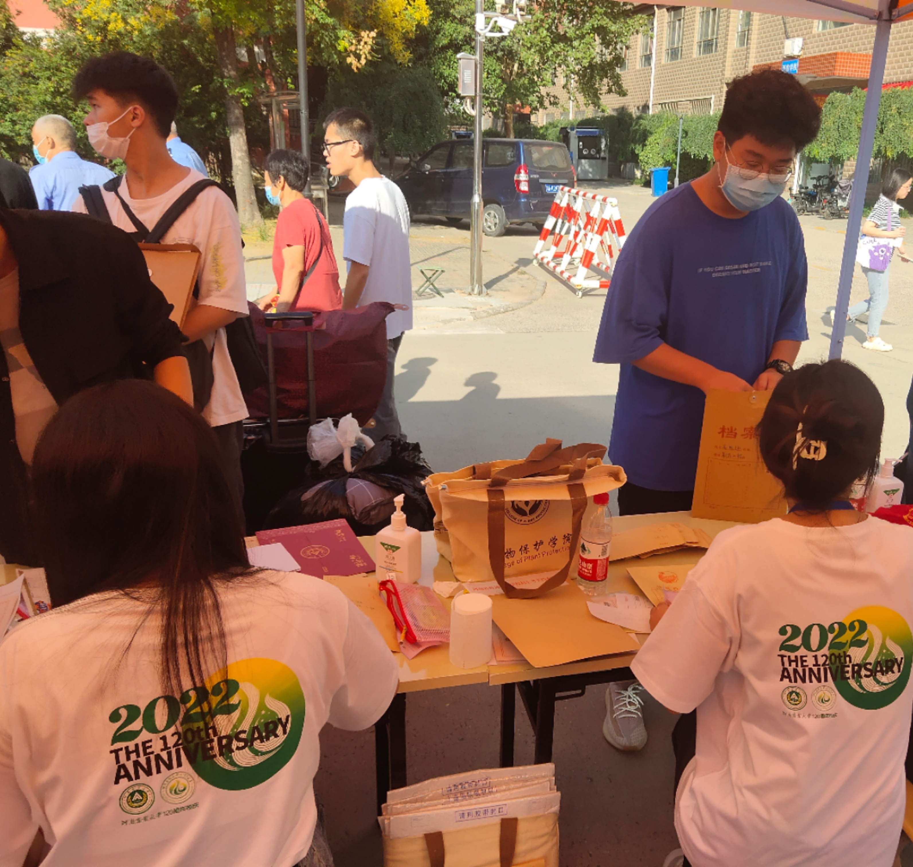 老师和学生干部以及迎新志愿者们,早早地来到了龙子湖校区及桃李园学生公寓新生报到处进行迎新准备工作,迎接从五湖四海而来,带着对未来的憧憬的22级新生们。