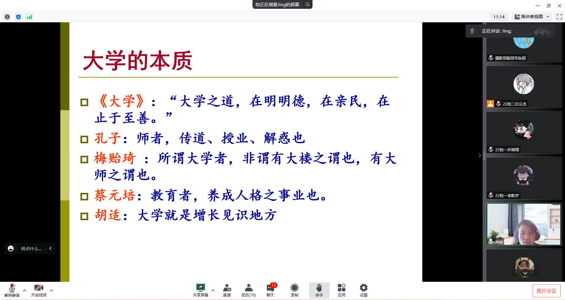于10月30日线上举办“学品行之责,立品德之范,升品味之雅,筑成功之路”主题学习经验交流会。院优秀青年教师、高年级优秀学生代表及全体2022级新生参加学业指导。