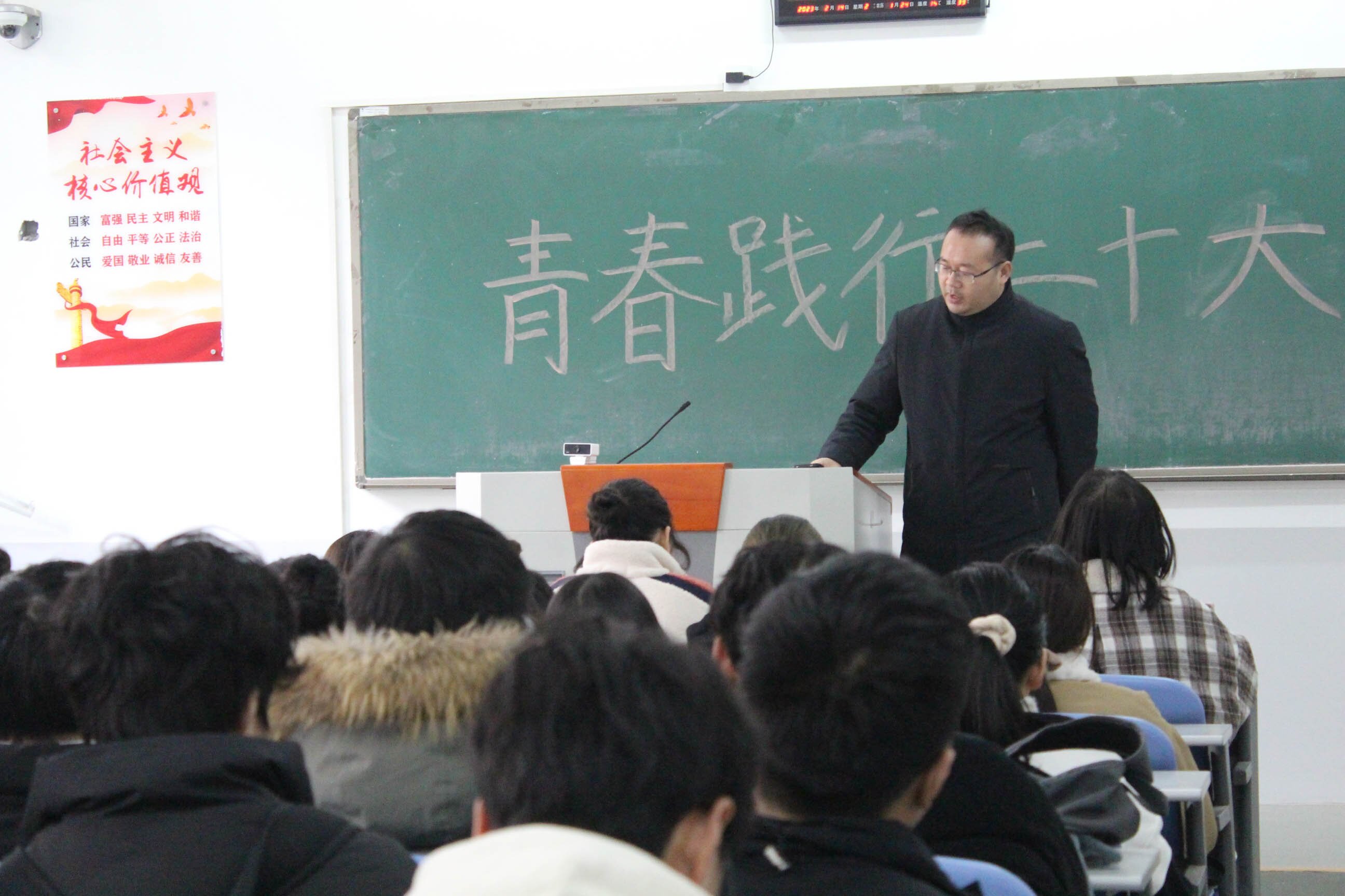 学生班召开了以“青春践行二十大”为主题的班会活动,各班主任结合专业特色和学生实际,叮嘱学生要提高思想政治素质,坚定理想信念;筑牢安全防线,共建平安校园;加强学风建设,助力学生成长成才。教育引导学生:一要情系祖国,奉献青春。要心怀感恩,胸怀大志,厚植家国情怀,立志做有理想、敢担当、能吃苦、肯奋斗的新时代好青年。二是要培养健康身心,塑造完美人格。同学们要加强体育锻炼,历练健全的人格,满怀信心激情,成长为德智体美劳全面发展的新时代大学生。三是要脚踏实地,笃行实干。作为新时代青年,要珍惜青春韶华,追逐梦想,加强理论学习,锻造强大本领,努力成为建设社会主义现代化强国的高素质人才