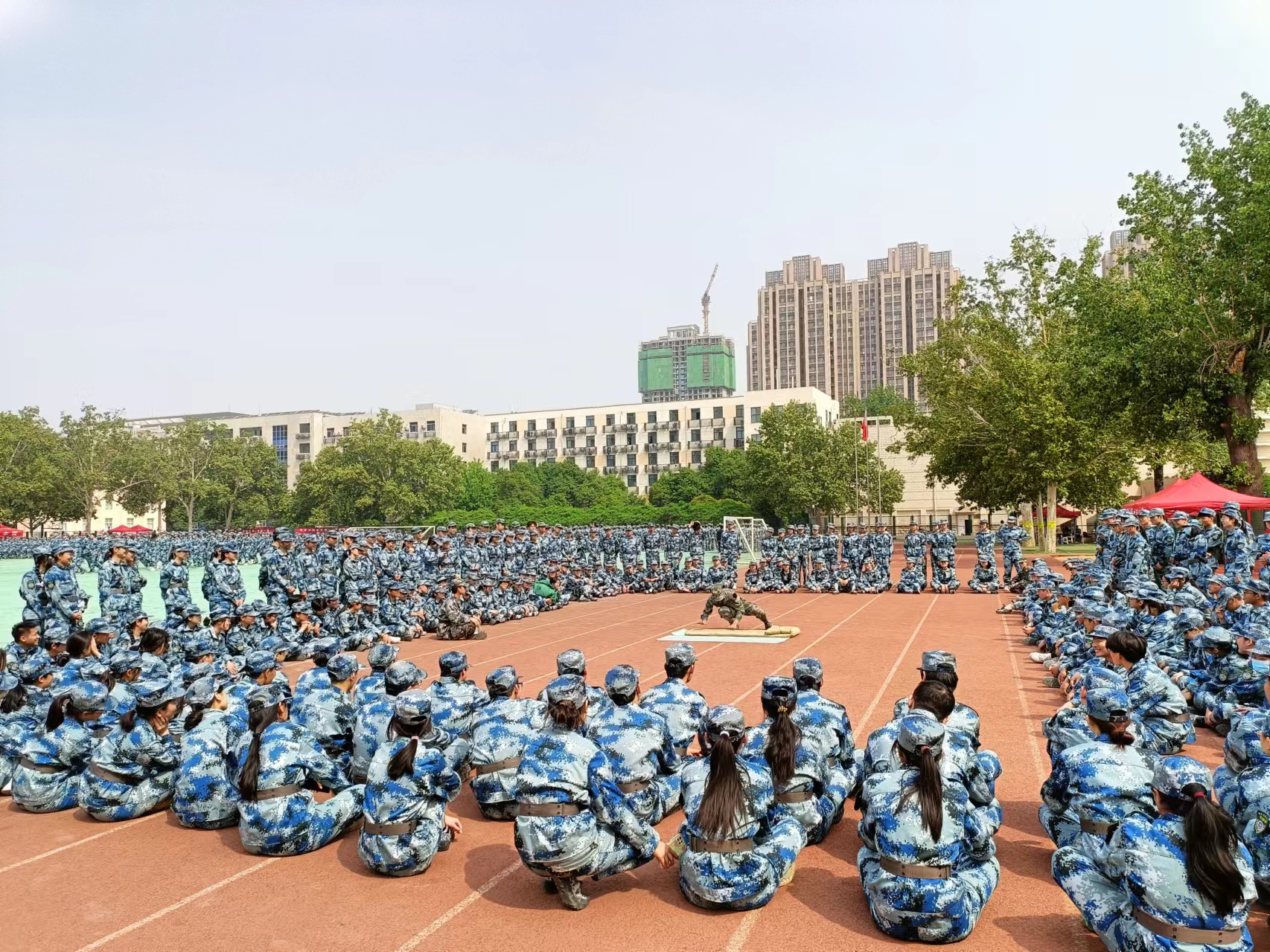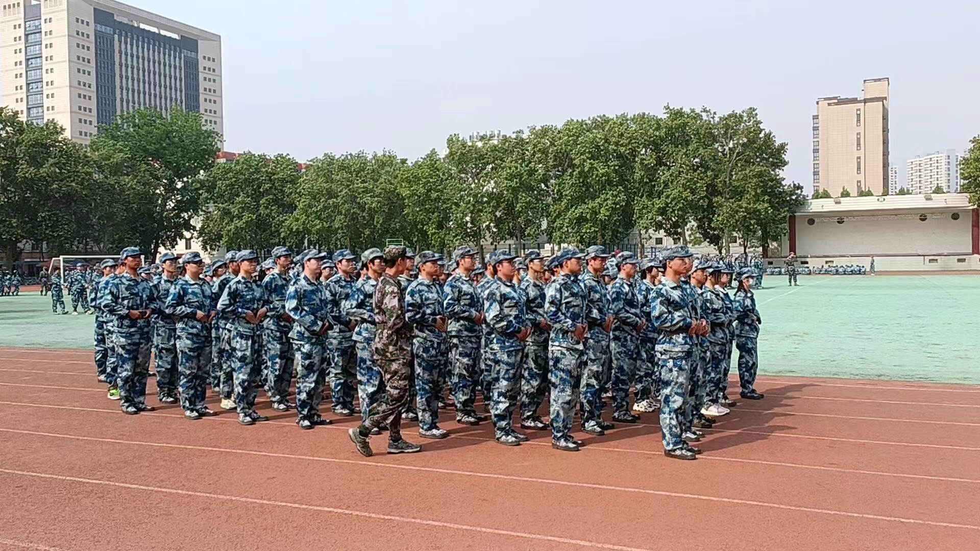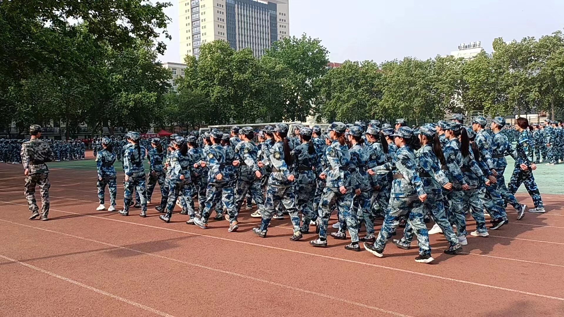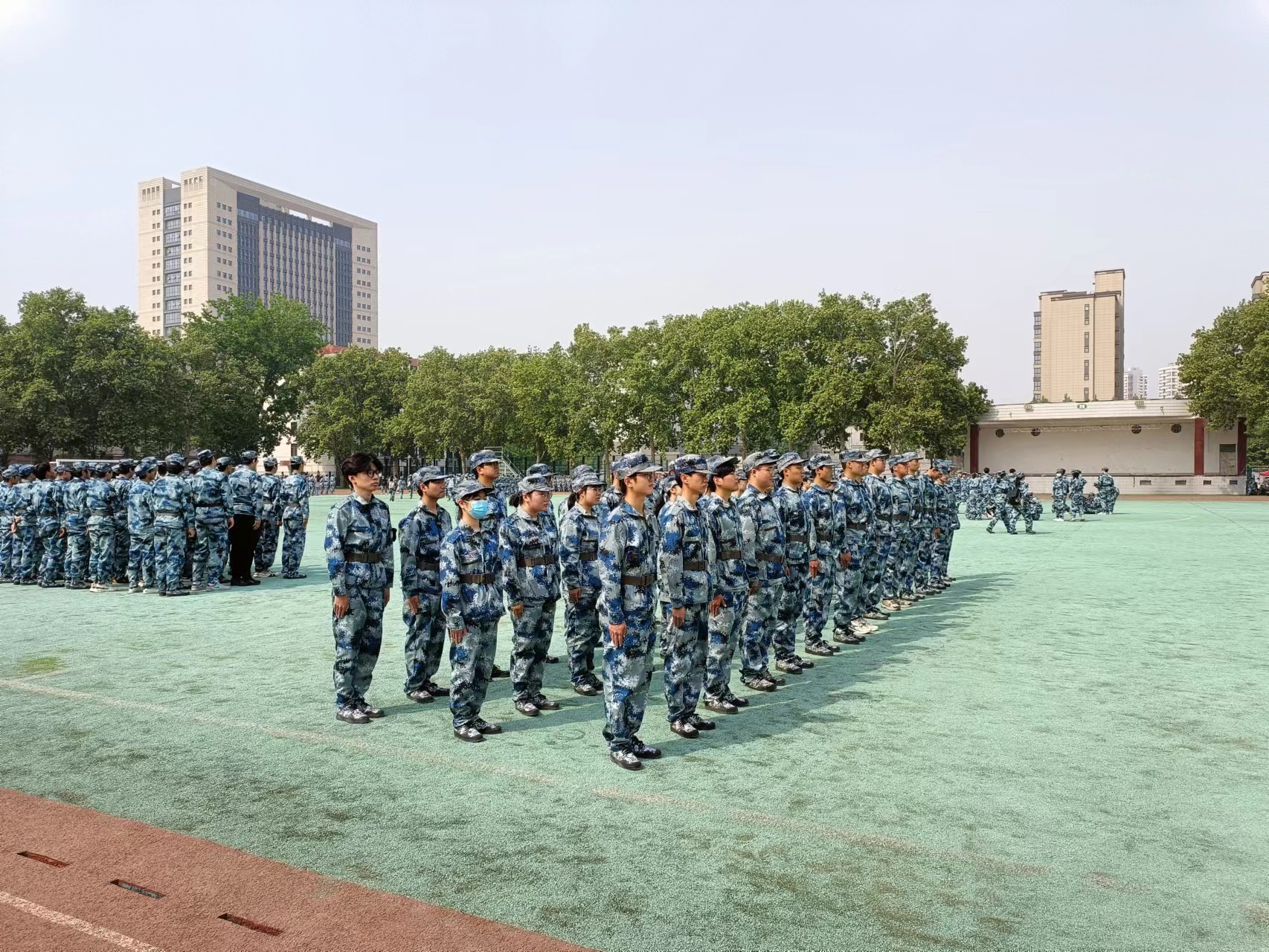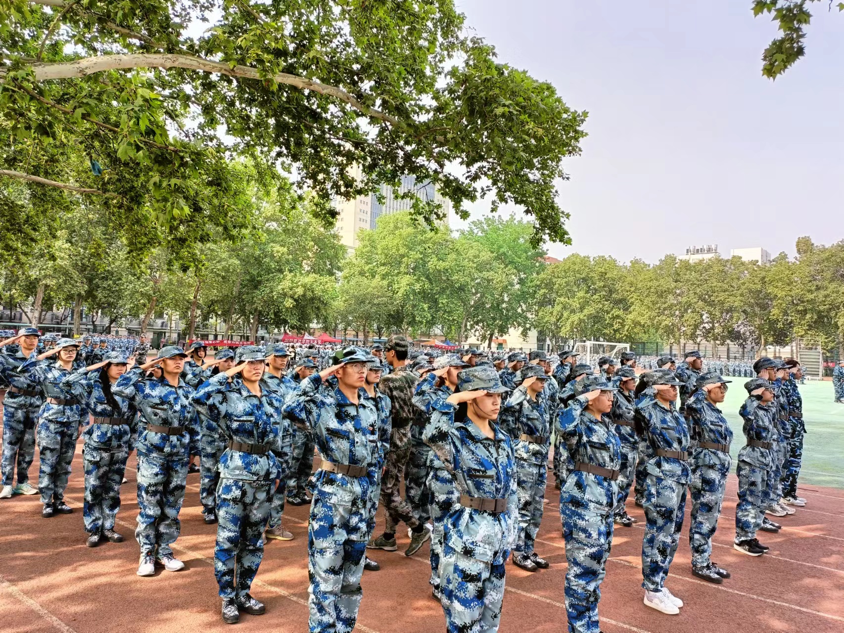 大一学生齐聚文化路校区训练场开展为期一周的军训补训。