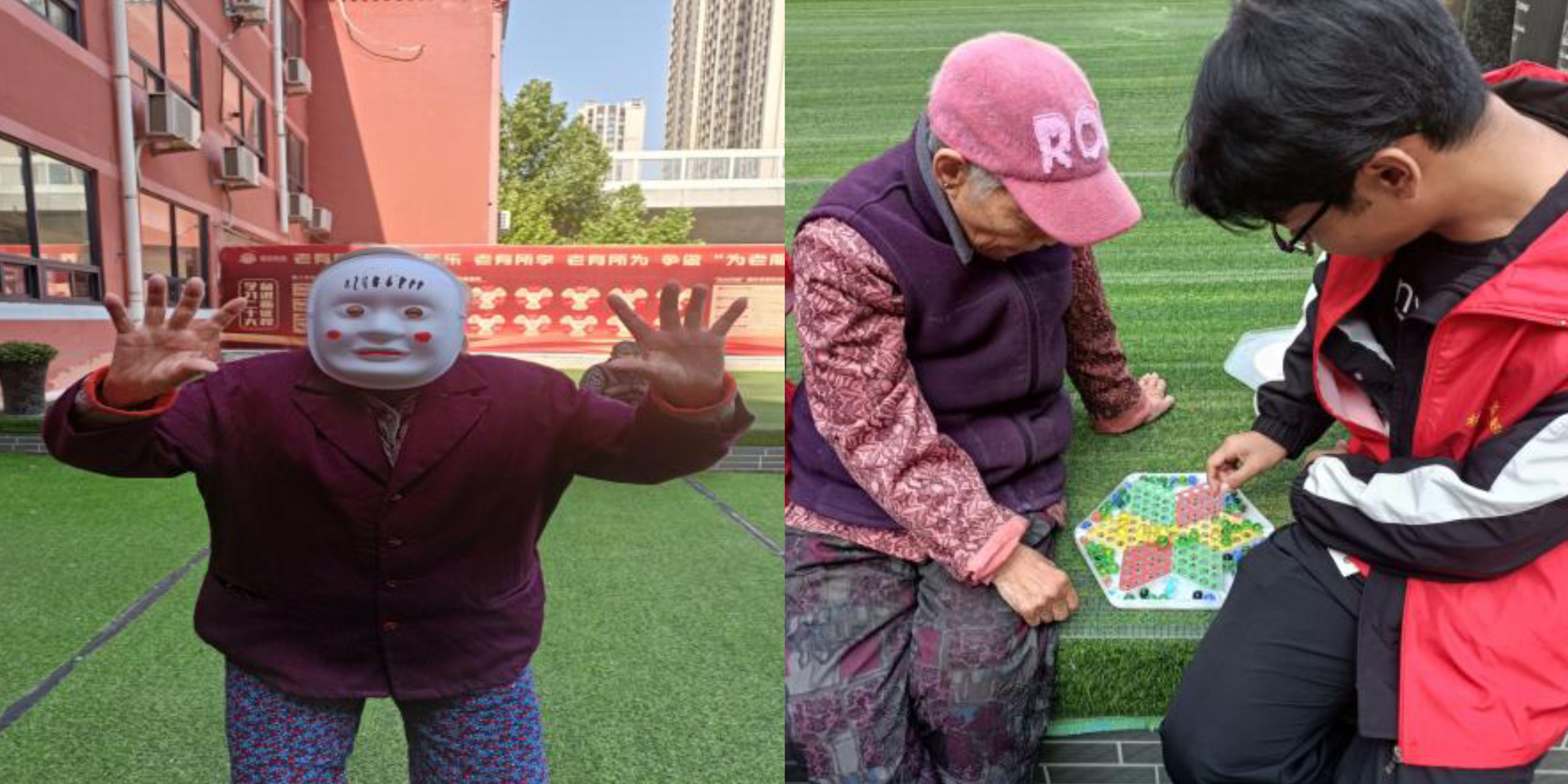 志愿者们和老人们一起娱乐