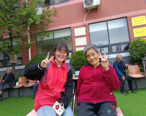 志愿者和奶奶合影