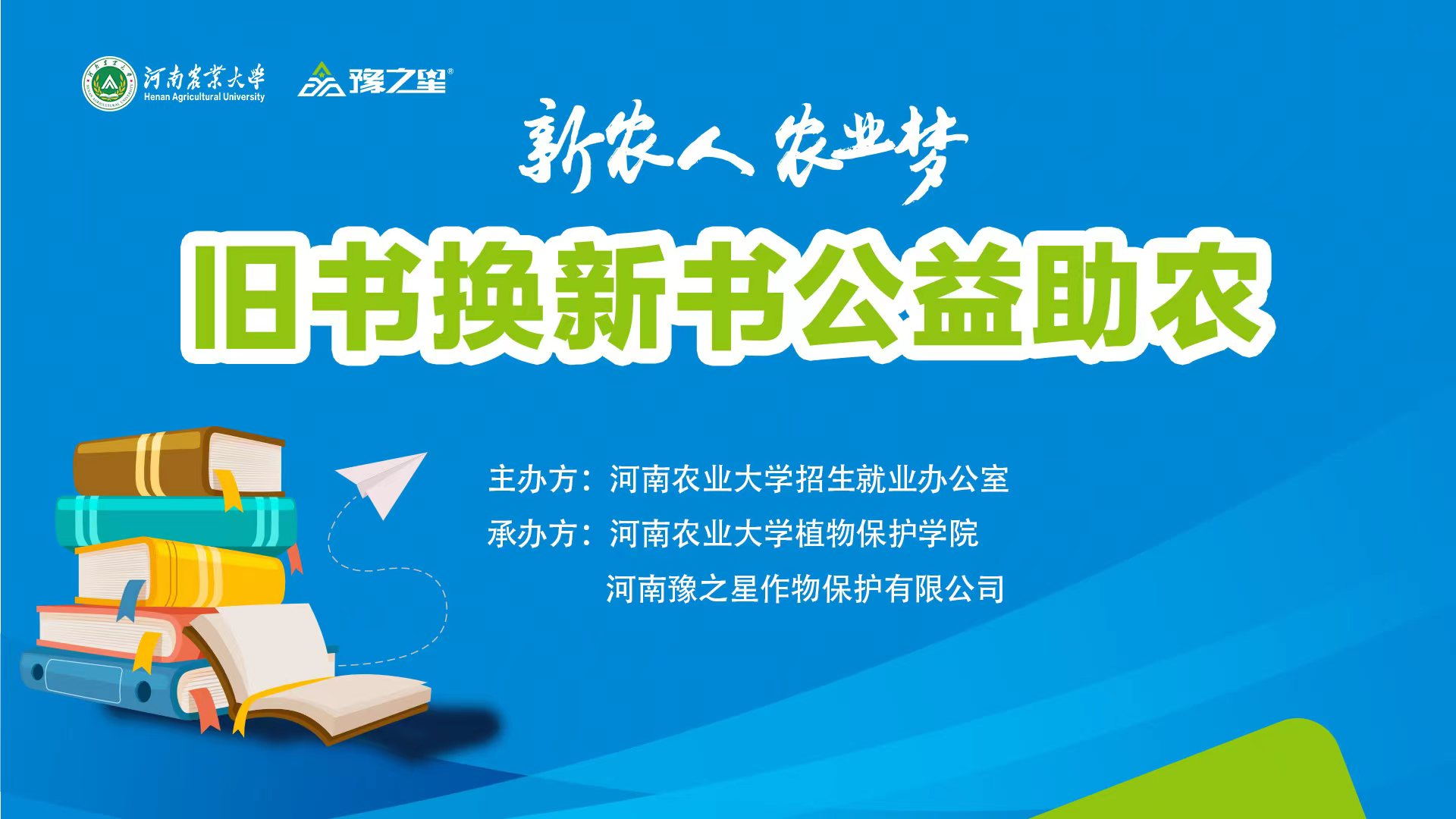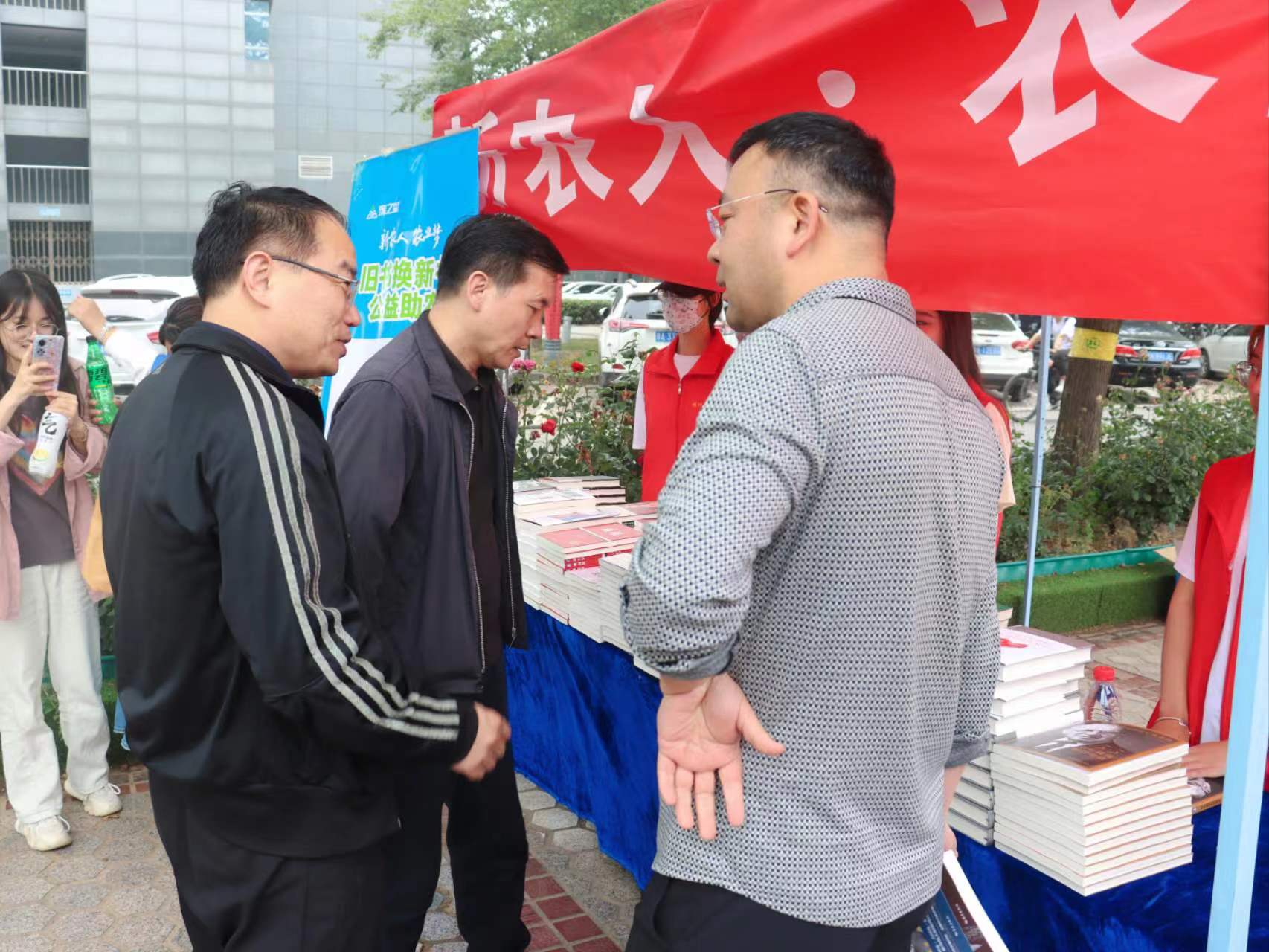 承办的“新农人·业梦 旧书换新书”活动在文化路校区举行,校、院相关单位负责人与豫之星董事长李国建一行参加活动。