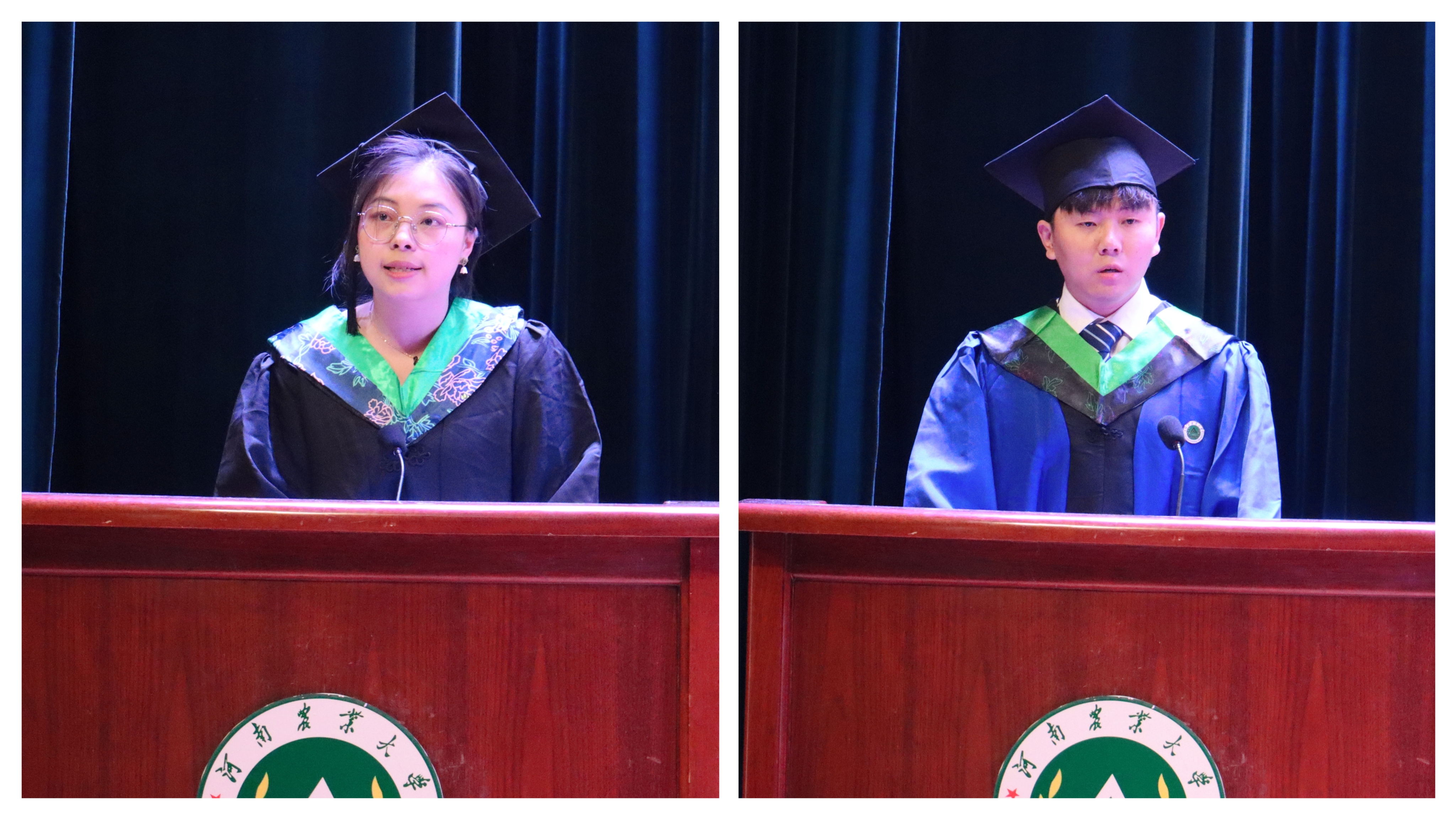 本科生代表黄容、研究生代表谷晓行先后上台发言,分别讲述了自己与农大的故事,回顾了大学生活的点点滴滴,叙述了属于全体2023届毕业生的“独家记忆”。向一直教导、关心大家的老师表达最崇高的谢意,向一起朝夕相处的同学们送上最真诚的祝福, 并表示站在新征程新目标的起跑线上,将努力成为时代洪流中逢山凿路、遇水架桥的“艰苦创业人”,在祖国的万里山河中践行青春梦想,为实现中国梦而努力奋斗。