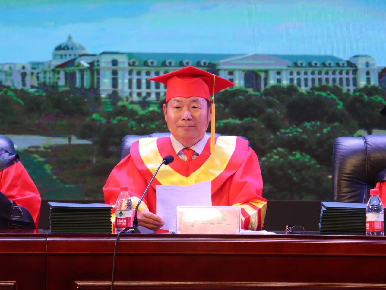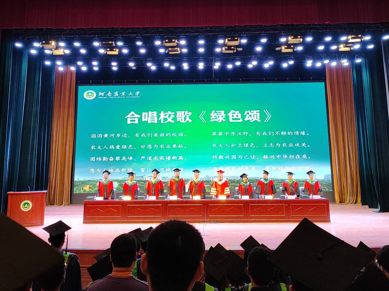 毕业典礼在雄壮嘹亮的国歌声中拉开帷幕。