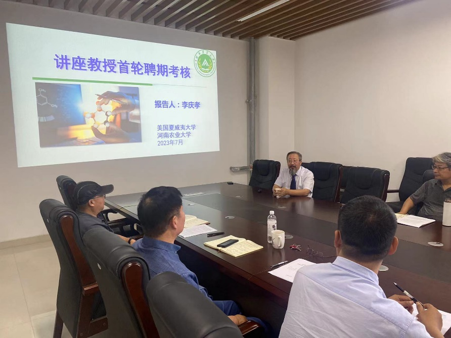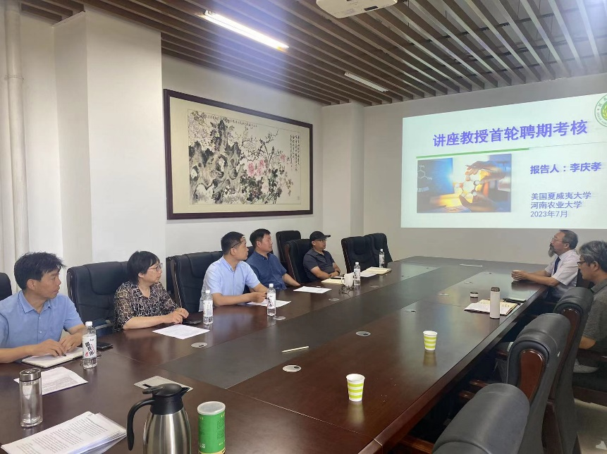 于龙子湖校区第二实验楼2中217会议室举行李庆孝教授首轮聘期考核会。院长李洪连、副院长安世恒、程绎南教授、汤清波教授、丁胜利教授、郭线茹教授参与考核。会议由李洪连主持。