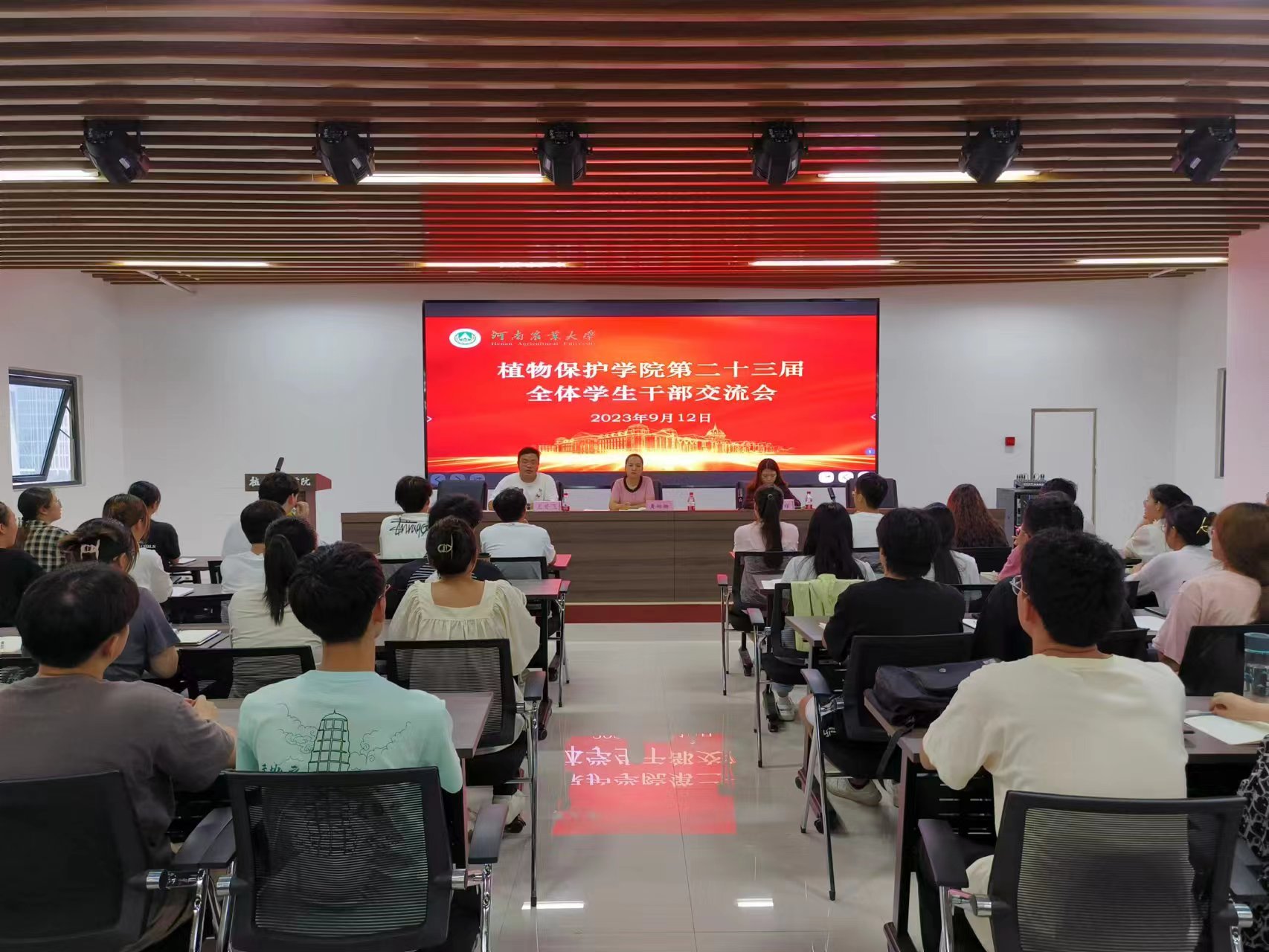 于龙子湖校区第二实验楼六楼会议室召开第二十三届全体学生干部交流会。院团委书记黄姗姗、院团委副书记白瑜瑾及国产直播