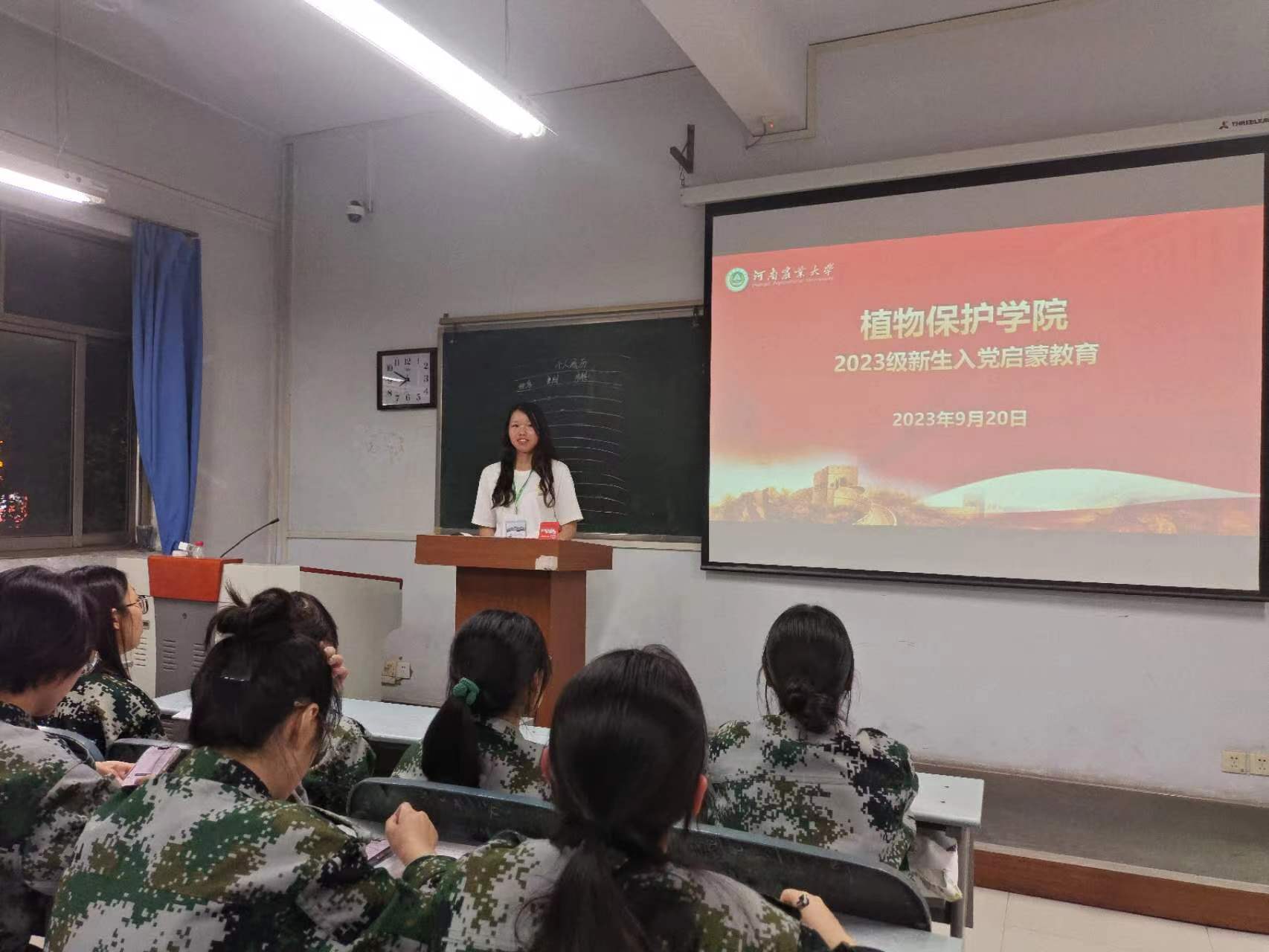 于9月20日下午举办了新生入党启蒙教育活动。2023级全体新生参加启蒙教育,会议由组织部部长周君珂主持。