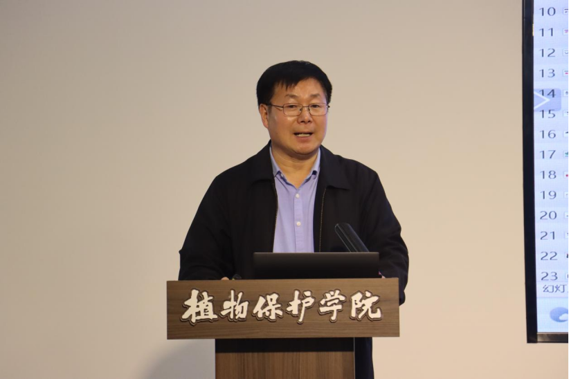 特别是植保学科发展的支持。他指出,植物保护是农业生产持续发展的保证,是国家粮食安全、食品安全、生态安全、生物安全和乡村振兴的重要保障,希望植保学院坚守“强农”初心,勇担“兴农”使命,贯彻落实“创新、协调、绿色、开放、共享”发展理念;恳请各位专家为推动国产直播