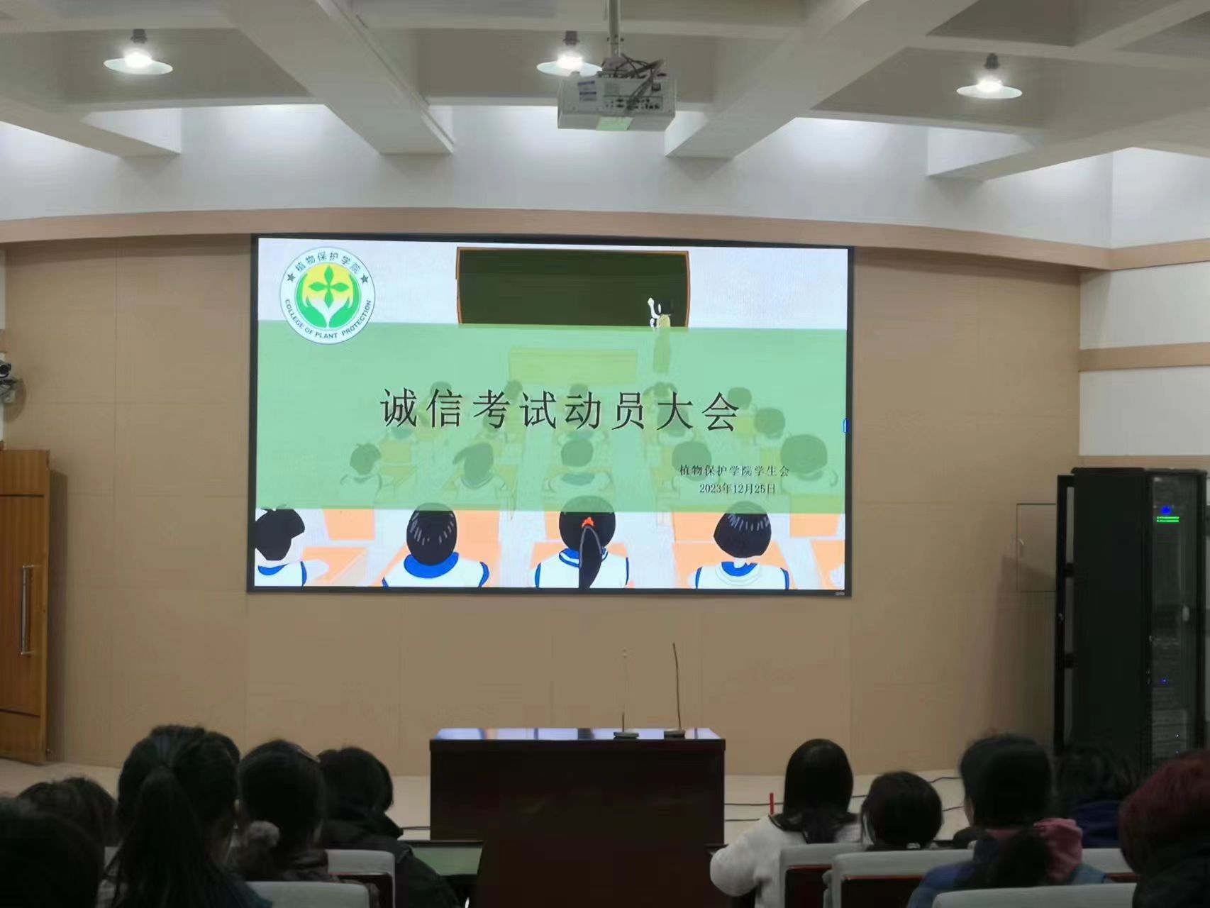 于文化路校区大礼堂召开诚信考试动员大会。辅导员代琳及全体2023级学生参加会议,会议由代琳主持。