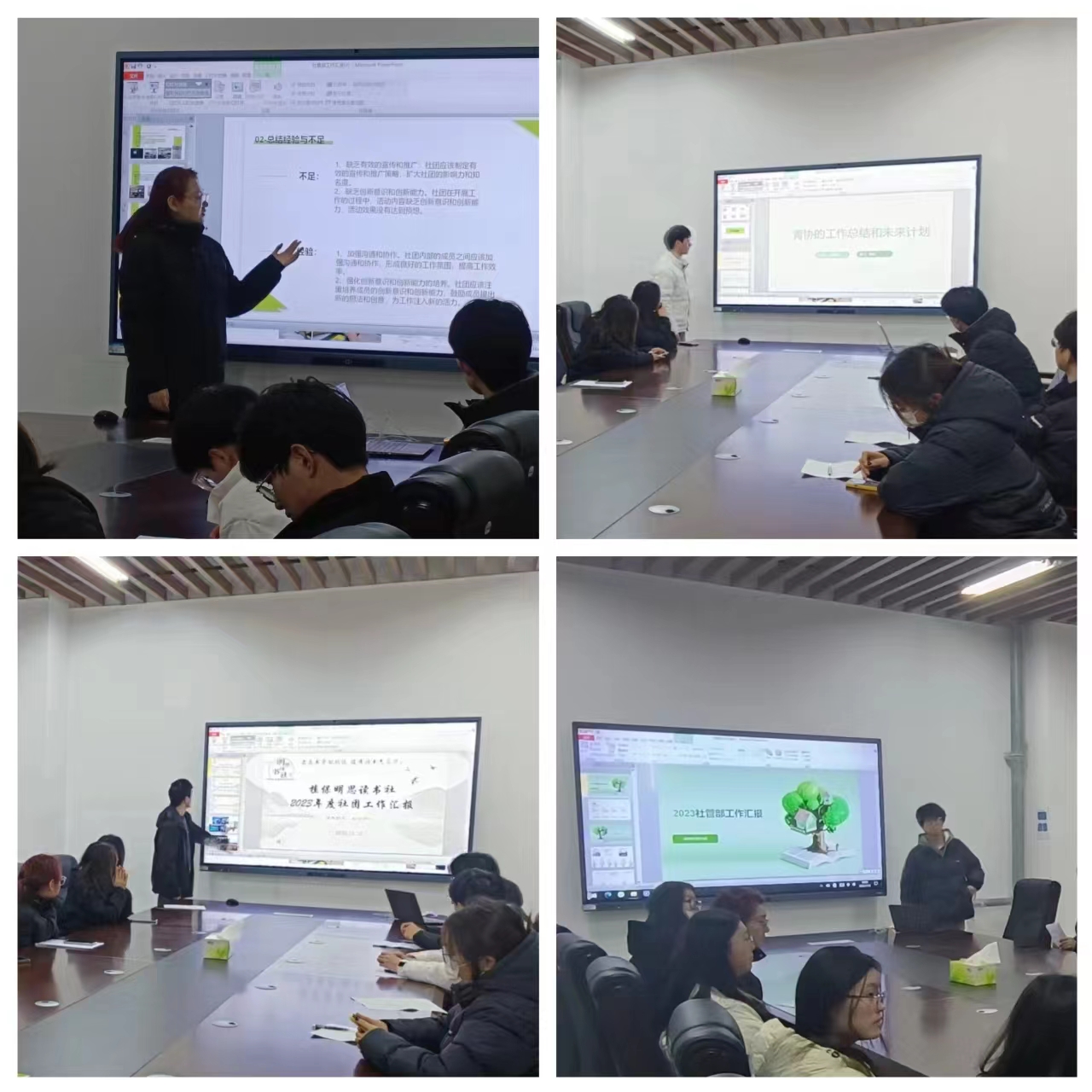 益起爱青年志愿者协会、英语爱好者协会、绿社团、明思读书社代表对2023年度工作开展情况、存在问题、未来工作计划等方面进行述职,详细介绍了社团特色活动及育人成果,进一步明确了未来社团发展的目标和前景。