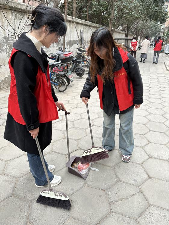 青年志愿者们走进郑大工学院社区,开展“雷锋精神我传承,‘锋’华正茂暖社区”社区志愿服务活动。