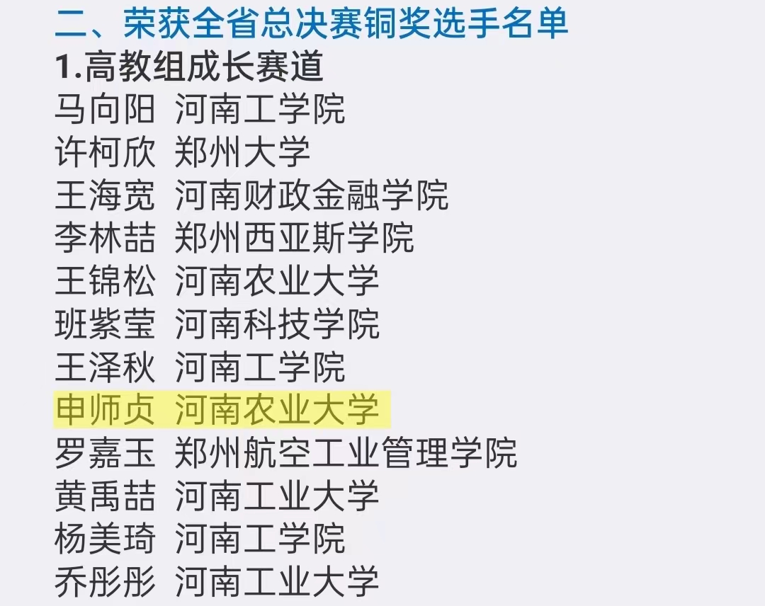 申师贞同学在大赛中脱颖而出,荣获全省高教组成长赛道总决赛铜奖。