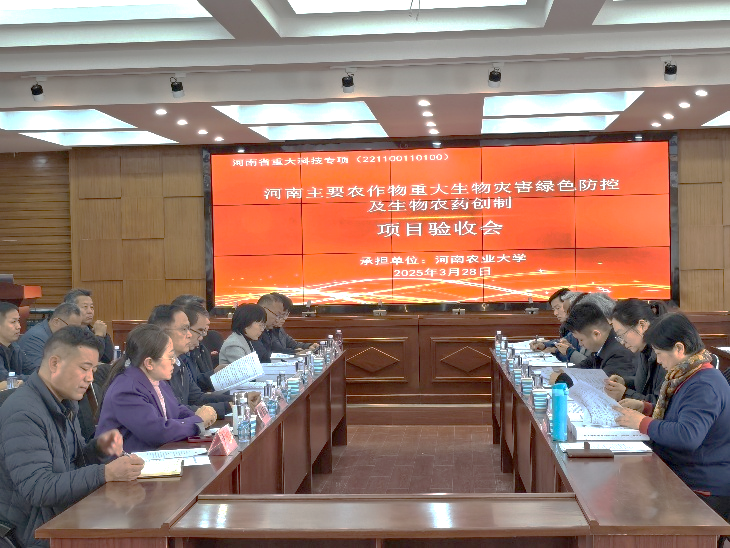 周琳教授主持的河南省重大科技专项“河南主要农作物重大生物灾害绿色防控及生物农药创制”进行结项验收。省科技厅现代农业农村处处长李永恩、主任科员陈希源以及国产直播