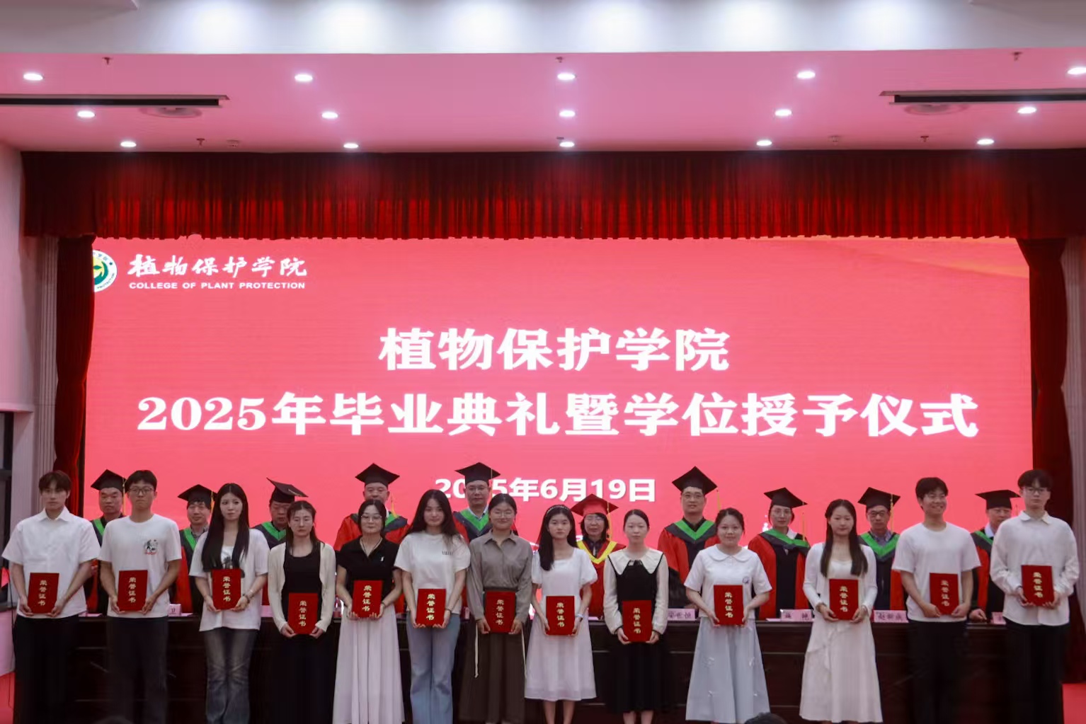 院长周琳代表全体教职工向圆满完成学业的毕业生们表示最热烈的祝贺!向为教育工作付出辛勤劳动的各位领导和老师们表示衷心的感谢。她送给毕业生三粒特殊的“种子”:第一粒是“家国情怀”的种子。希望大家将个人理想追求融入国家发展的宏伟蓝图,把“解民生之多艰”作为自己的使命与担当,为推动农业高质量发展贡献植保人的智慧与力量!第二粒是“科学探索”的种子。期待你们永葆对科学前沿和未知的好奇与探索热情,在智慧植保、绿色防控等关键领域勇攀高峰,传承老一辈植保人"精益求精"的工匠精神,培养"敢为人先"的创新勇气。第三粒是“坚韧不拔”的种子。希望大家在面对挫折、困境时,能够始终坚守初心,无畏前行,在追梦征程中谱写属于自己的璀璨华章!