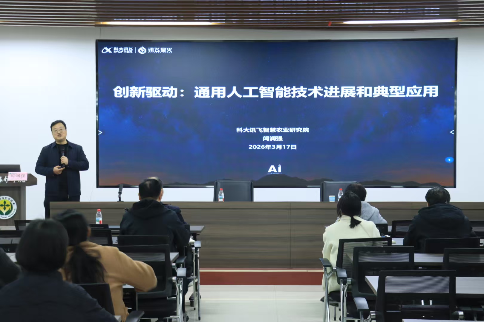 本网讯( 通讯员 谢毅文 图片 周悦馨 胡蝶)为把握人工智能与现代农业深度融合的发展趋势,探索“人工智能+农业”的创新应用,近日,学院特邀科大讯飞智慧农业研究院院长、河南省人工智能产业研究院院长闫润强博士作题为“创新驱动:通用人工智能技术进展和典型应用”专题报告。