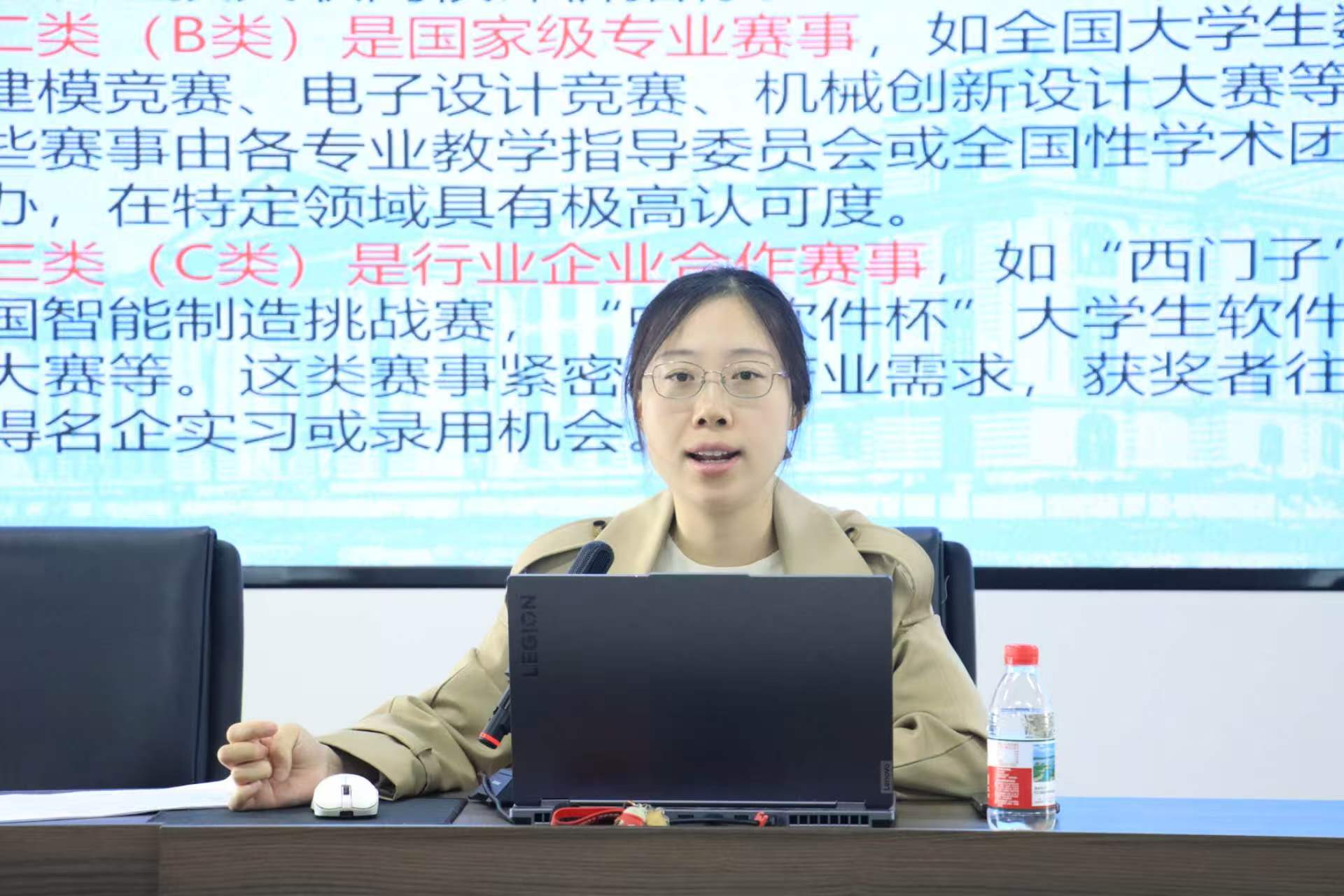 于龙子湖校区力行楼六楼会议室举办中国国际大学生创新大赛备赛宣讲会。会议邀请校招生就业办公室路平老师进行备赛宣讲,备赛的学生积极参加会议。会议由黄姗姗老师主持。
