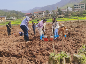 市国产直播17名青年党员代表在崔坪村开展义务植树,为当地种上经济作物——柿子树,助力乡村振兴工作。