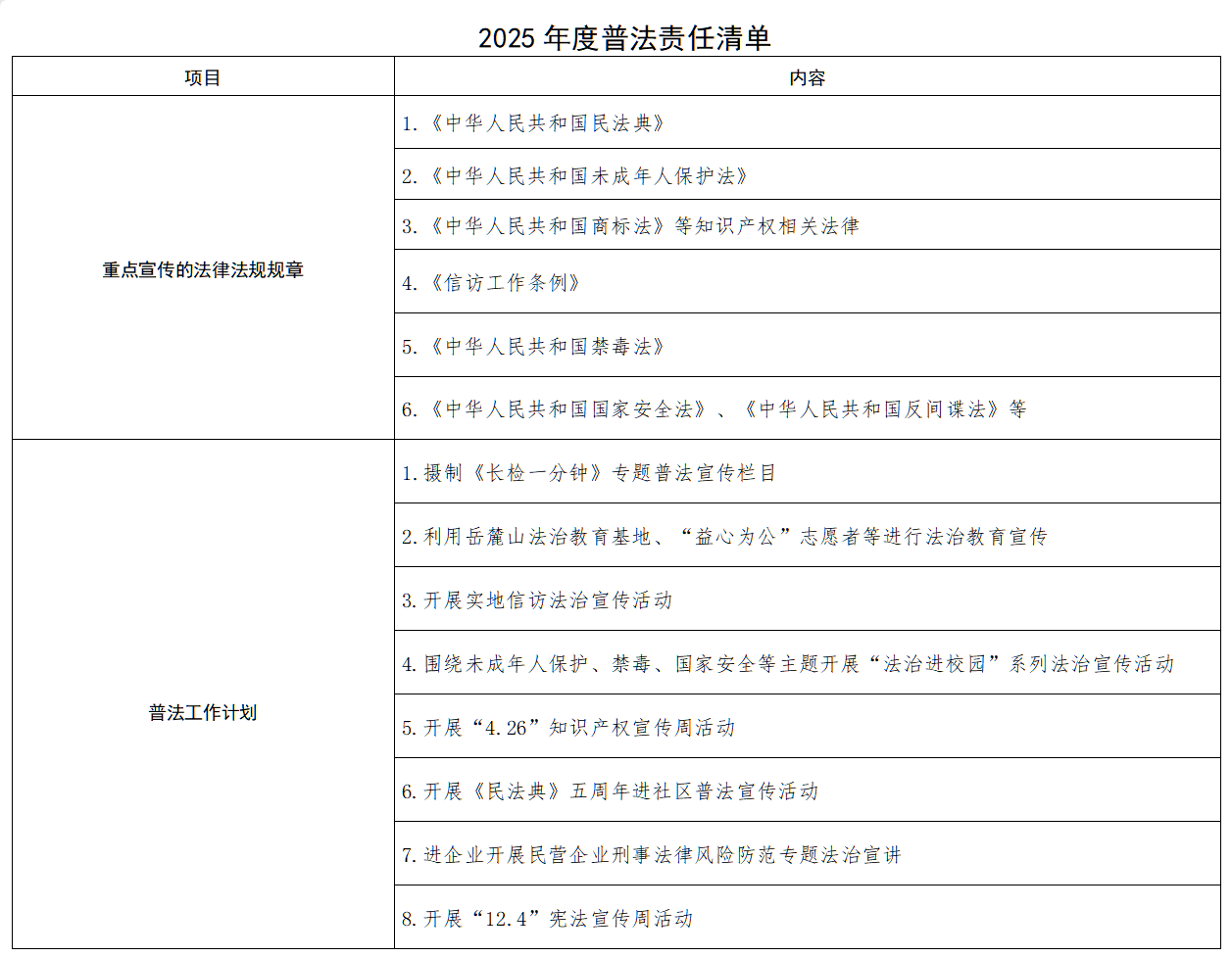 长沙国产直播 2025年度“谁执法谁普法”任务清单