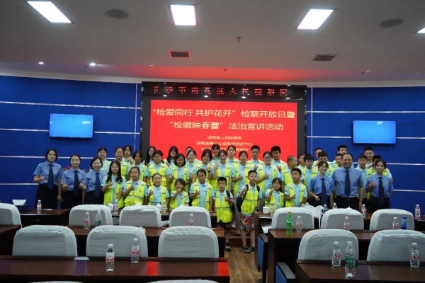 7月31日,湖南省国产直播联合长沙市国产直播、雨花区国产直播、湖南省心馨公益助学促进中心,为来自宁乡市、浏阳市、长沙县及望城区的近200名“希望小屋”受助学生们,开展了一次主题为“检爱同行 共护花开”检察开放日暨“检徽映春蕾”暑期法治宣讲活动,让孩子们充分感受一次“检察蓝”的法治魅力。